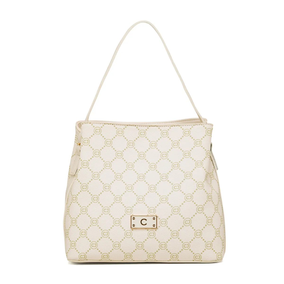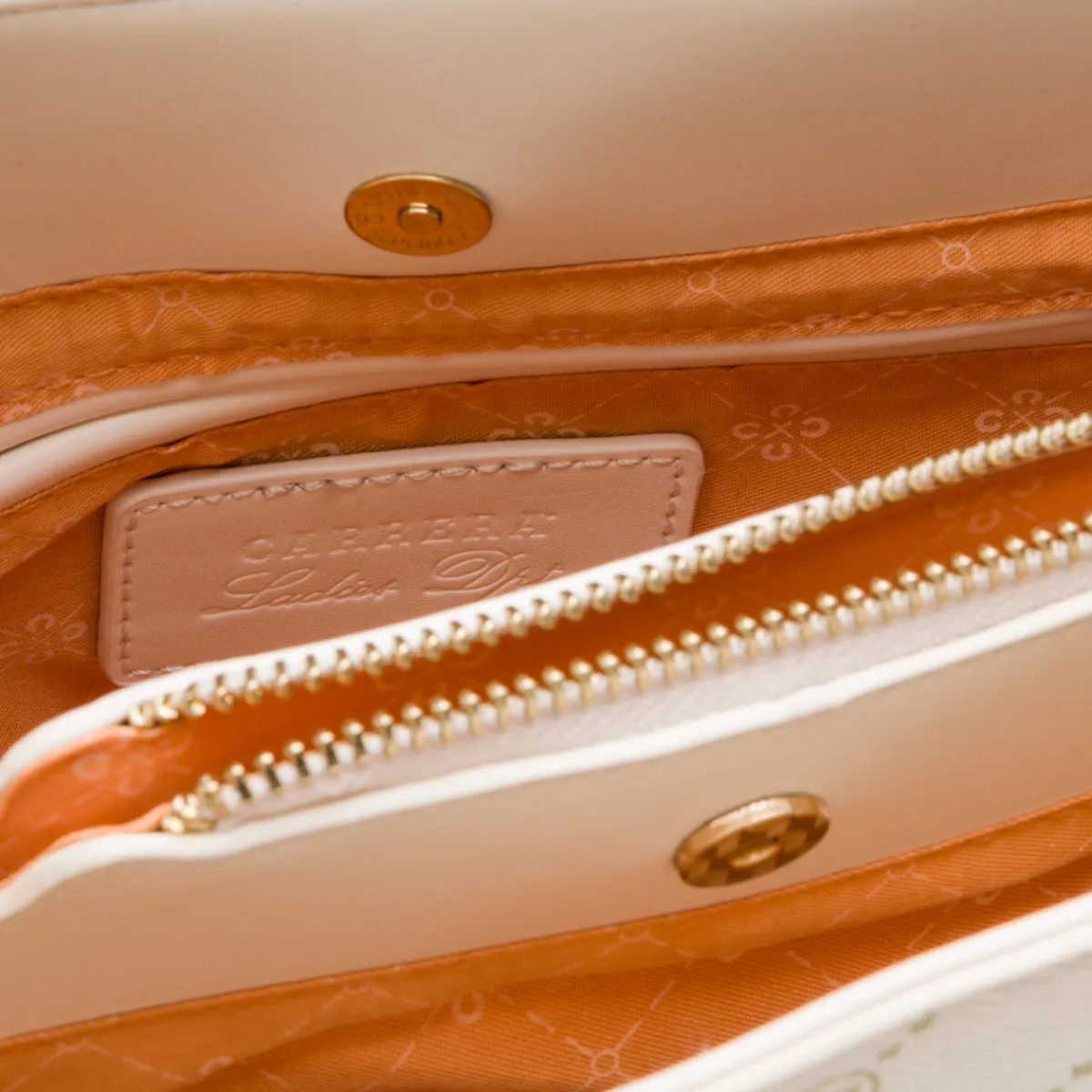 Borsa a mano da Donna firmata Carrera Jeans, in similpelle colore bianco off-white con inserti oro, tracolla rimovibile e interno foderato e con tasche.