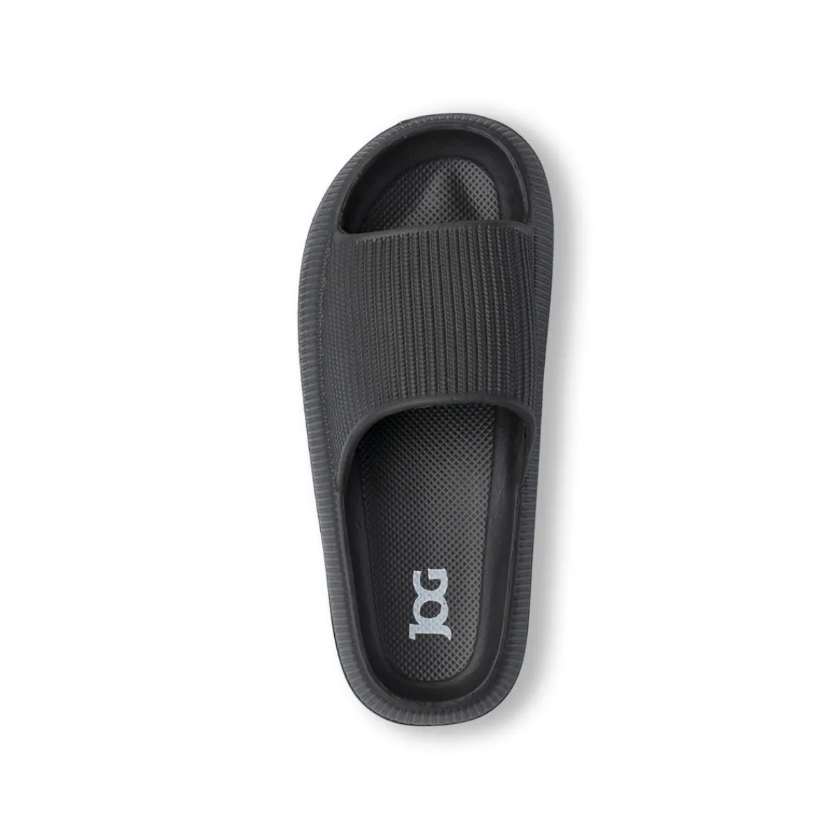 Scegli il comfort delle ciabatte nere a fascia Jog, perfette per la casa o per un look casual. La tomaia in materiale sintetico è morbida e leggera, mentre la suola in similpelle offre un’ottima aderenza. La soletta in materiale sintetico assicura comfort a ogni passo. Ideali per l’estate, queste ciabatte sono un must-have per il tuo guardaroba.
