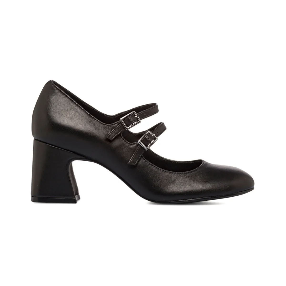 Eleganti Décolleté Mary Jane nere da donna, perfette per un look raffinato e di classe. Realizzate in pelle, queste scarpe presentano un doppio cinturino con fibbie metalliche, dettaglio che le rende uniche e di stile. Il tacco a blocco alto 6,5 cm dona slancio e comfort, rendendole adatte a diverse occasioni. Ideali per il lavoro, un evento speciale o una serata fuori. La punta tonda e il rivestimento interno in pelle completano il design raffinato.