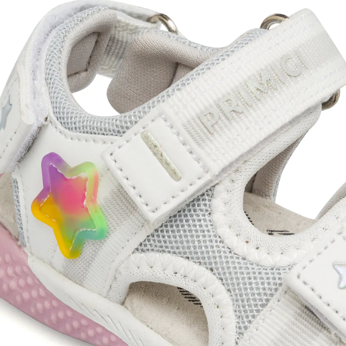 Questi sandali bianchi da bambina Primigi sono perfetti per i primi passi. Con dettagli colorati e una stella decorativa, sono comodi e allegri. La chiusura con doppio strappo assicura una calzata perfetta. Ideali per l’estate, sono realizzati con materiale sintetico, rivestimento e suola in similpelle, per una maggiore durata. La soletta è in materiale sintetico per un comfort ottimale. Un modello pensato per il gioco e il divertimento!