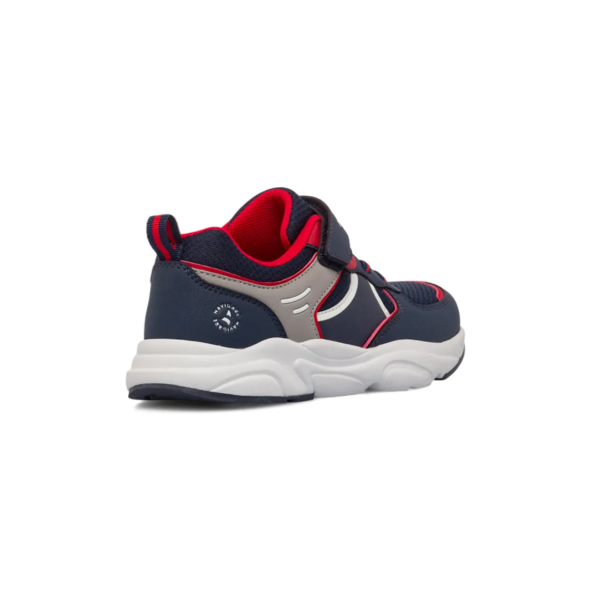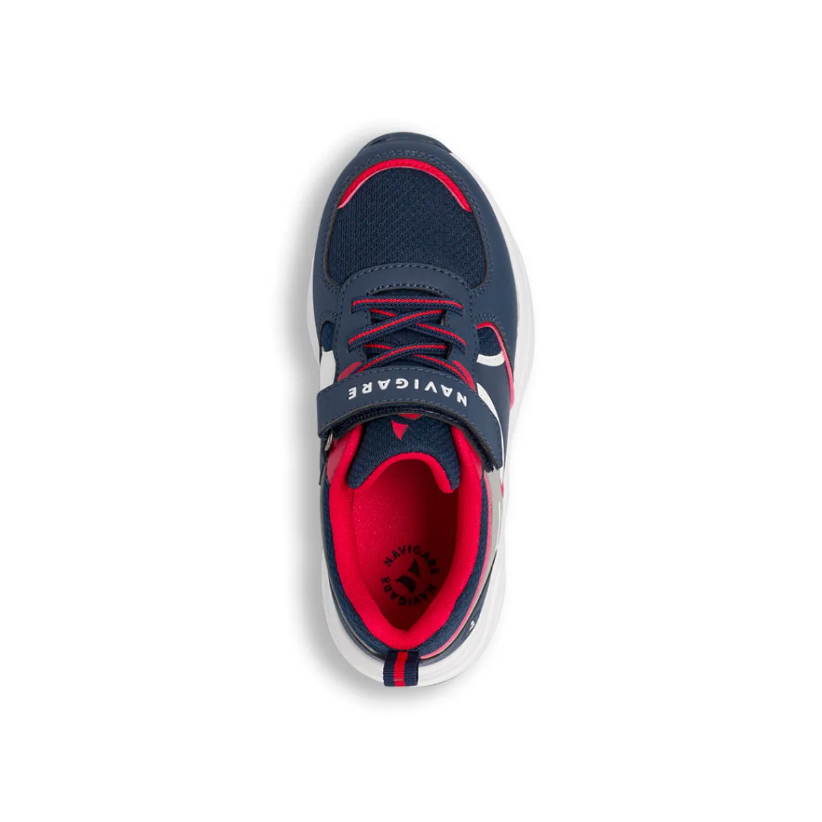 Queste sneakers blu da Ragazzo del marchio Navigare sono perfette per i piccoli avventurieri! Realizzate con tomaia in tessuto mesh e dettagli in similpelle. Rivestimento interno e soletta in materiale tessile. La chiusura a strappo garantisce una calzata facile e sicura, mentre il design sportivo e i dettagli colorati rossi e grigi aggiungono un tocco di stile. Ideali per giocare all’aria aperta o per un look casual di tutti i giorni. La suola bianca garantisce un’ottima aderenza. Perfette per la scuola e il tempo libero!