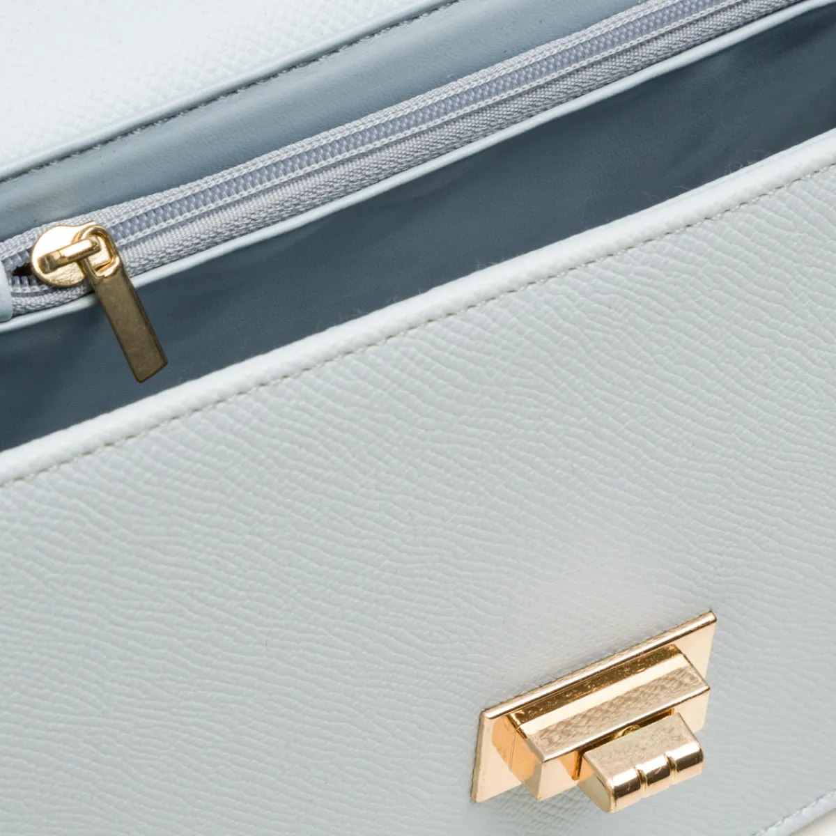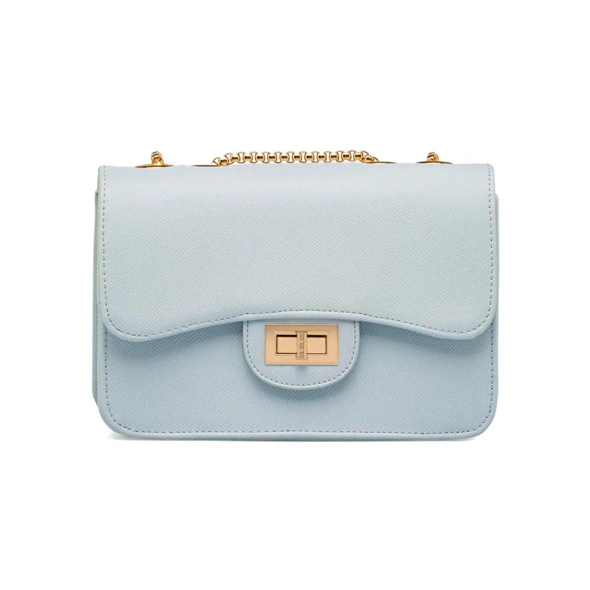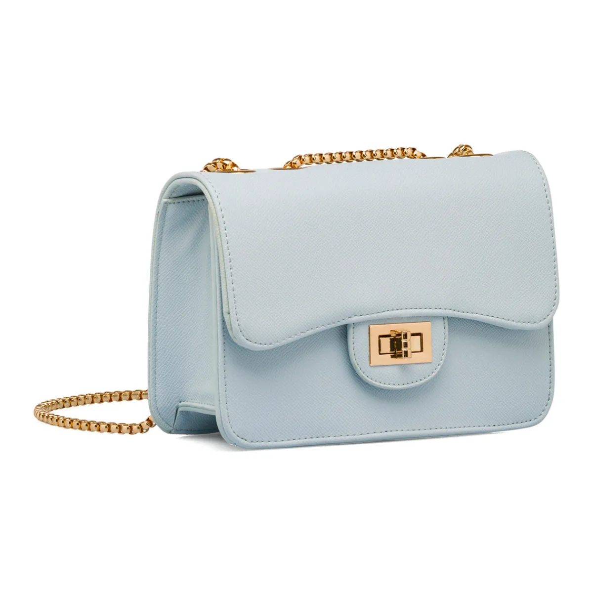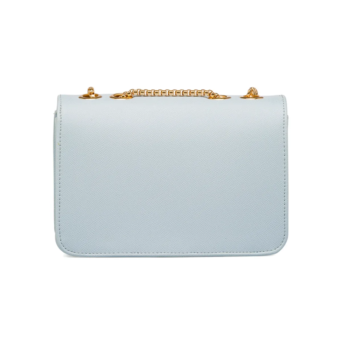 Elegante borsa a tracolla azzurra da donna firmata Lora Ferres. Realizzata in materiale sintetico di alta qualità, presenta una chiusura con meccanismo a scatto e una tracolla a catena dorata. Perfetta per completare il tuo outfit, con interni in materiale tessile.