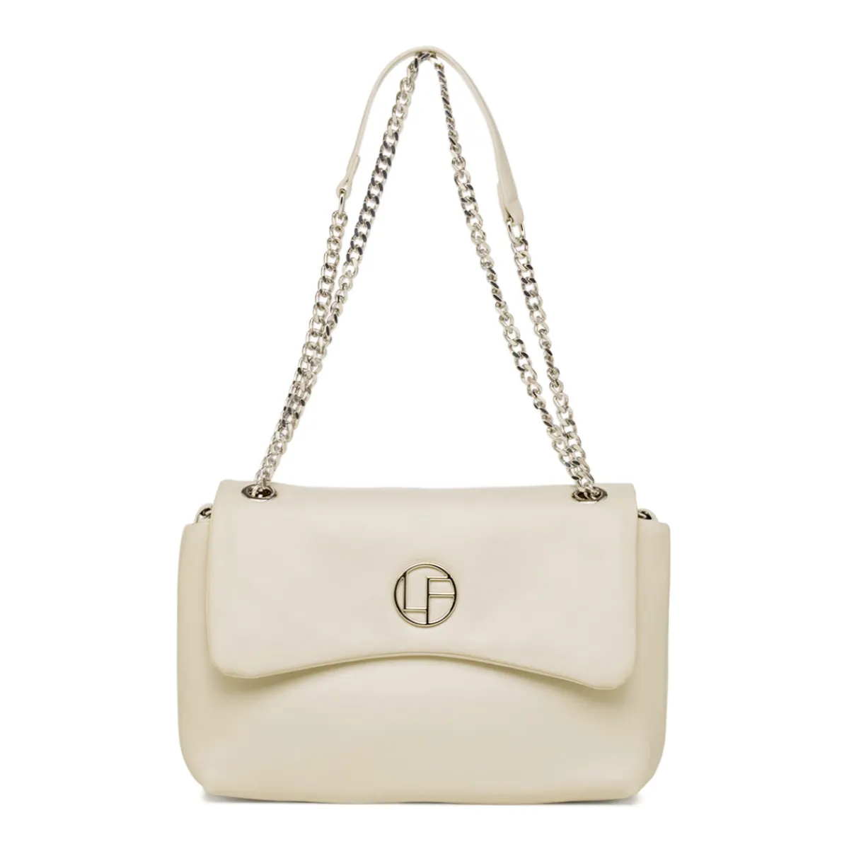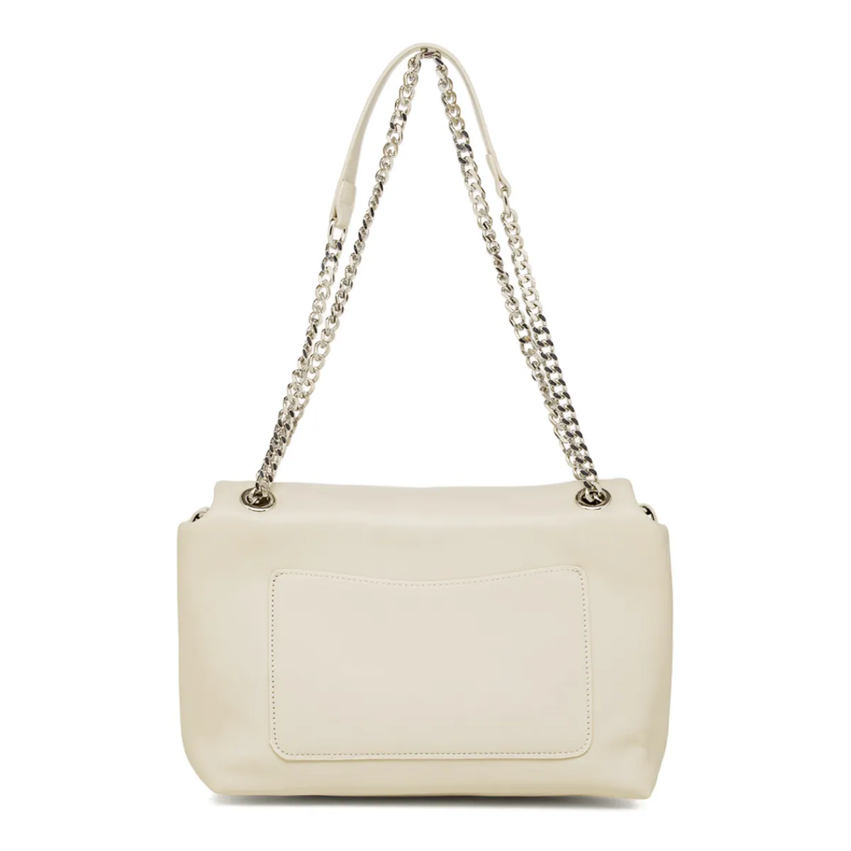 Elegante borsa a tracolla bianco off-white da donna firmata Lora Ferres. Perfetta per completare il tuo outfit giornaliero con stile, questa borsa presenta una chiusura superiore con bottone a magnetico e una tracolla a catena, dettaglio che le dona un tocco di raffinatezza. Un accessorio must-have per la donna moderna e versatile.