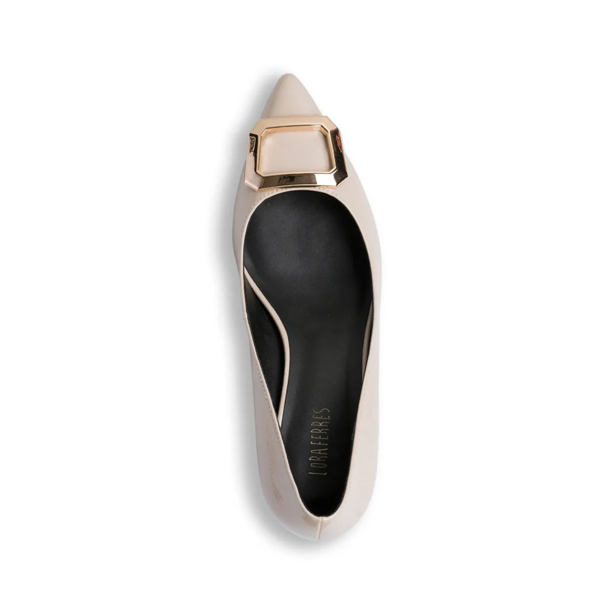 Décolleté da donna beige effetto vernice Lora Ferres, con tacco alto 6 cm a stiletto e dettaglio in metallo. Un modello elegante e raffinato, perfetto per occasioni speciali. Realizzate in similpelle, queste décolleté sono ideali per un look femminile e sofisticato.