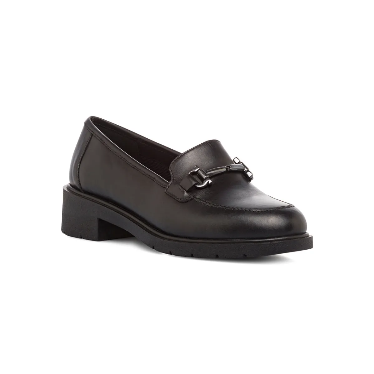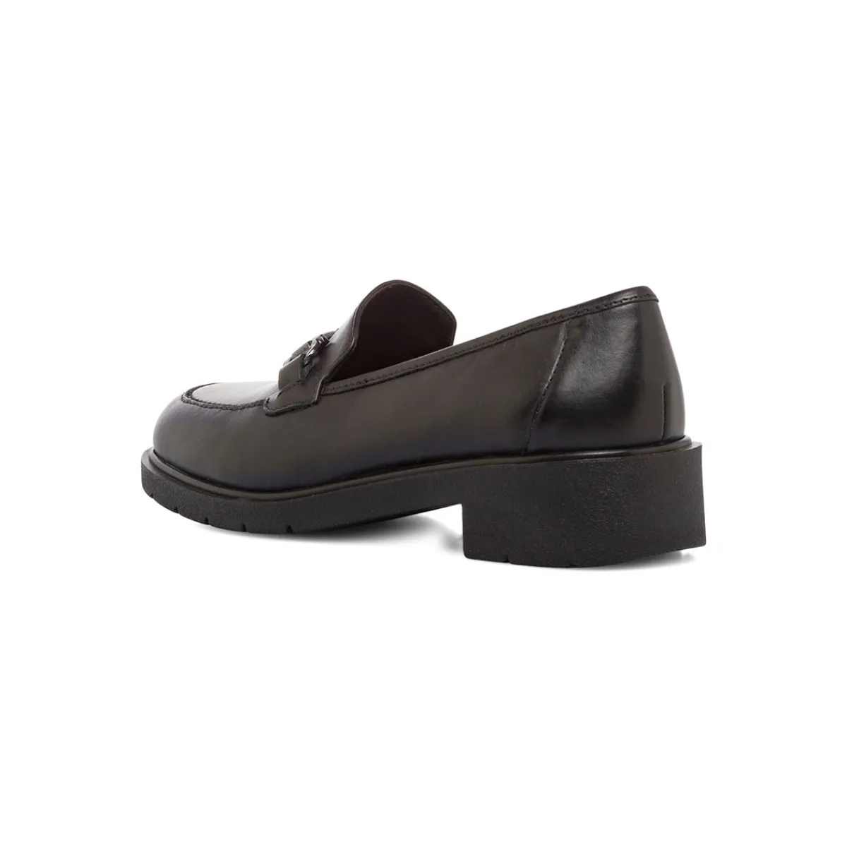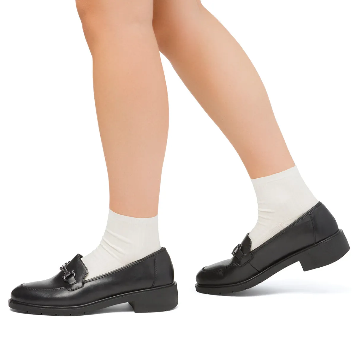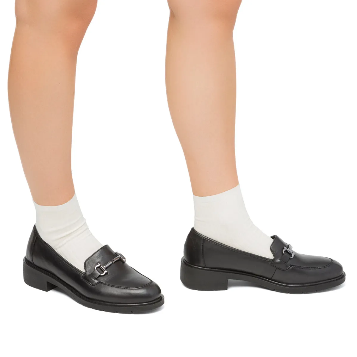 Mocassini da donna Primopiano con tomaia in pelle colore nero e morsetto in metallo.