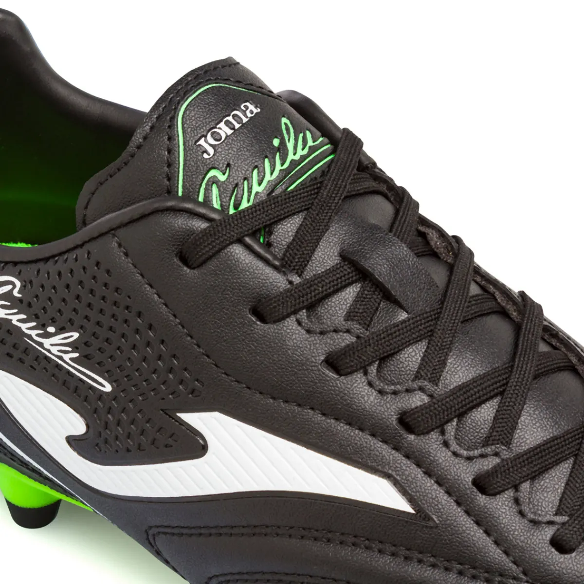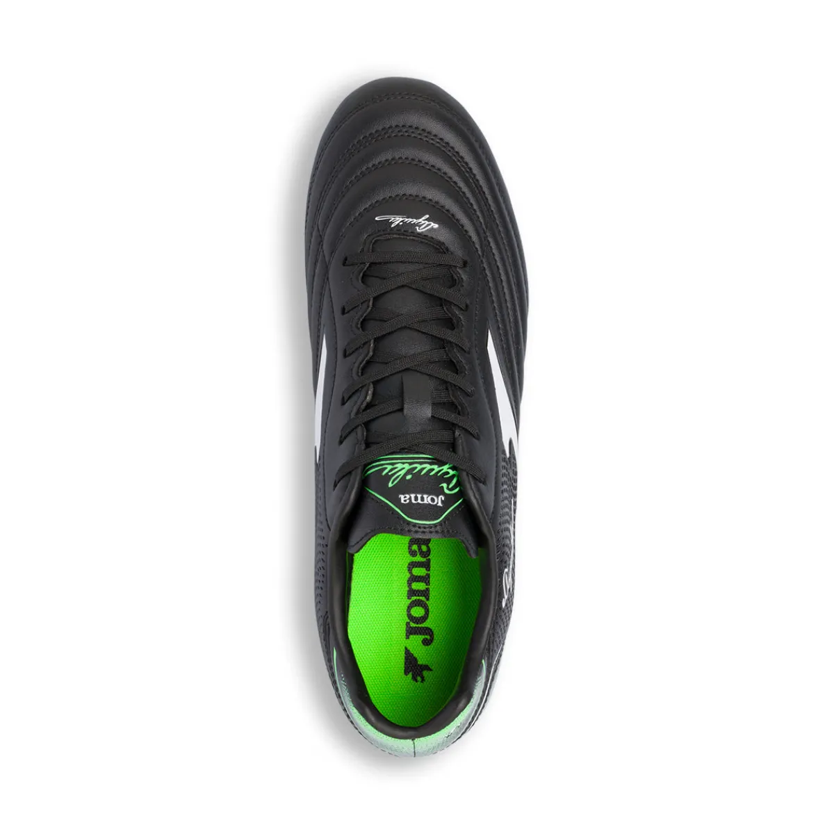 Scarpe da calcio nere da uomo del marchio Joma, perfette per affrontare il campo con stile e prestazioni ottimali. Realizzate in similpelle, offrono comfort e resistenza. La suola in gomma garantisce un’aderenza eccellente sul terreno, mentre la soletta in materiale tessile assicura una maggiore traspirabilità. Un modello classico e versatile, ideale per giocatori di ogni livello.