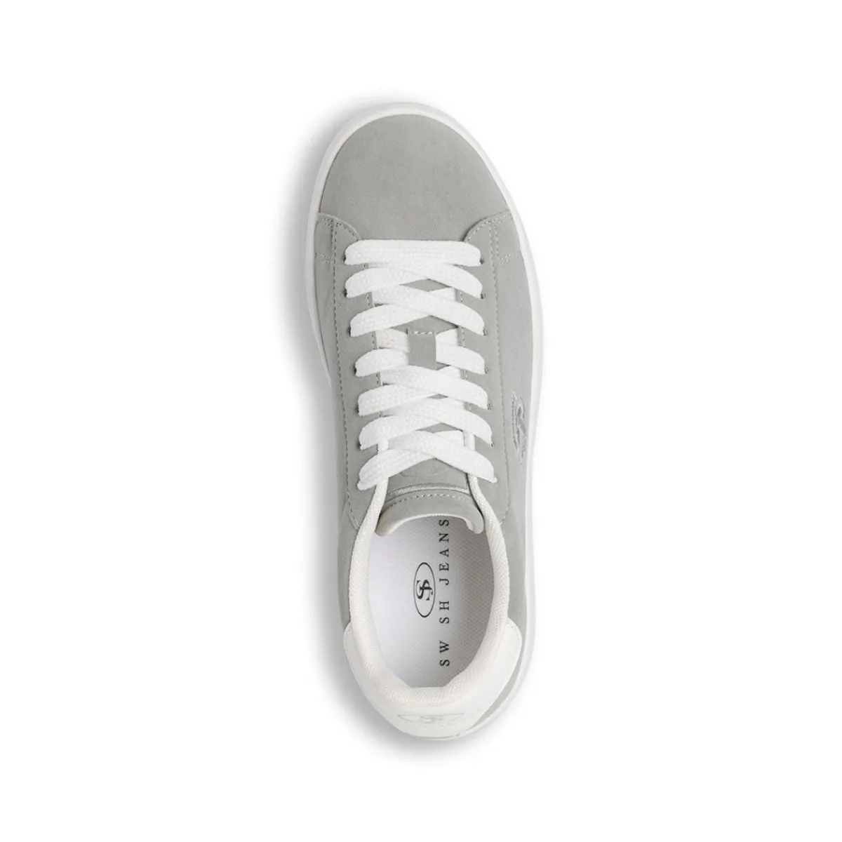 Sneakers grigie da donna Swish Jeans, perfette per un look casual e di tendenza. Realizzate in similpelle scamosciata, queste sneakers presentano un design minimal chic, con lacci bianchi e il logo Swish Jeans ricamato. La suola piatta garantisce comfort e praticità per tutto il giorno. Ideali per completare outfit informali, dal jeans al vestito.