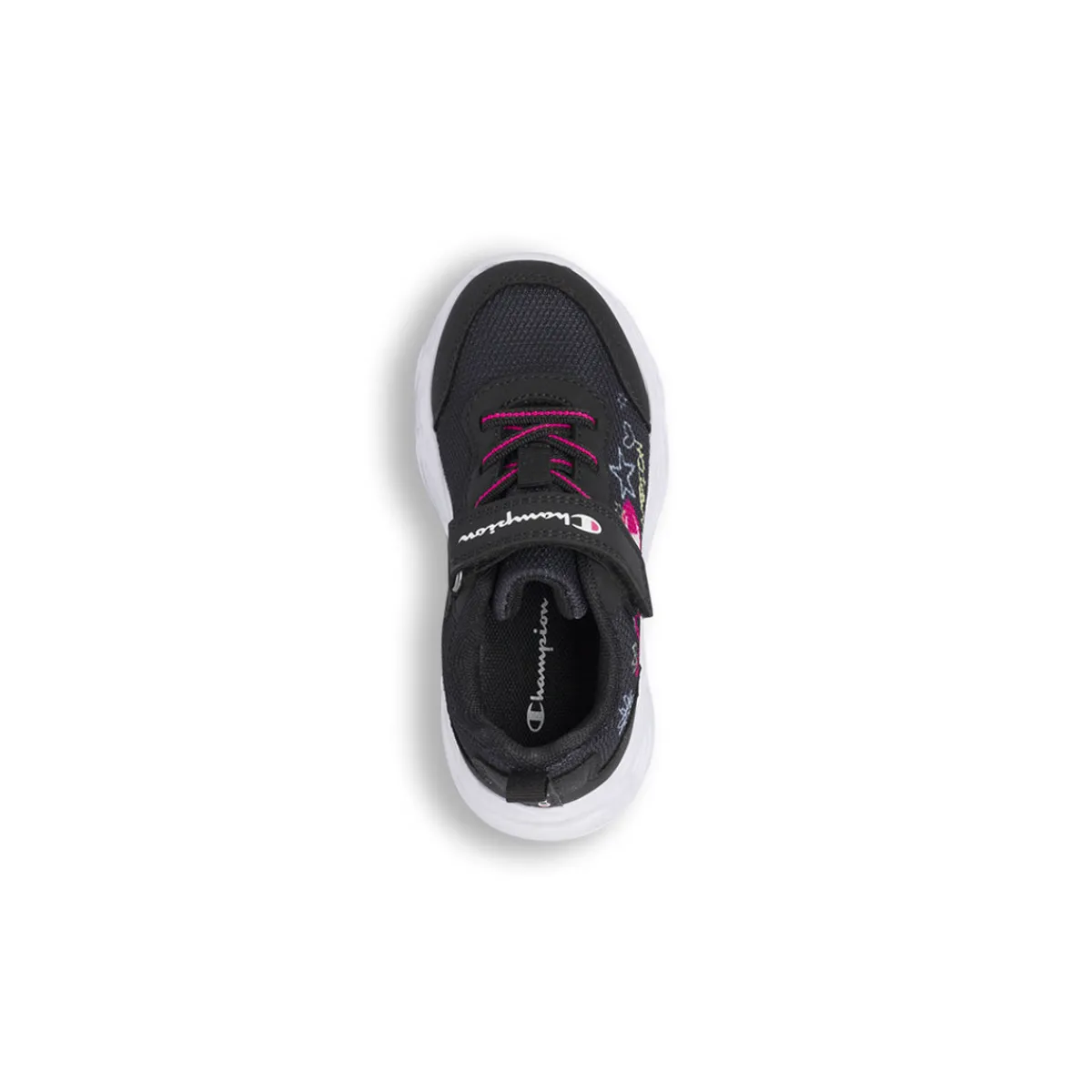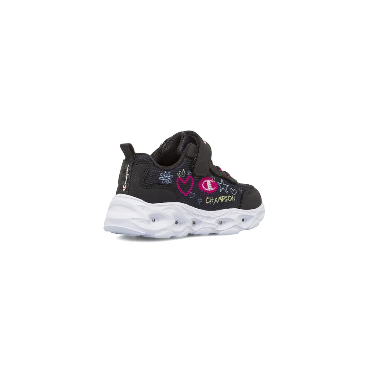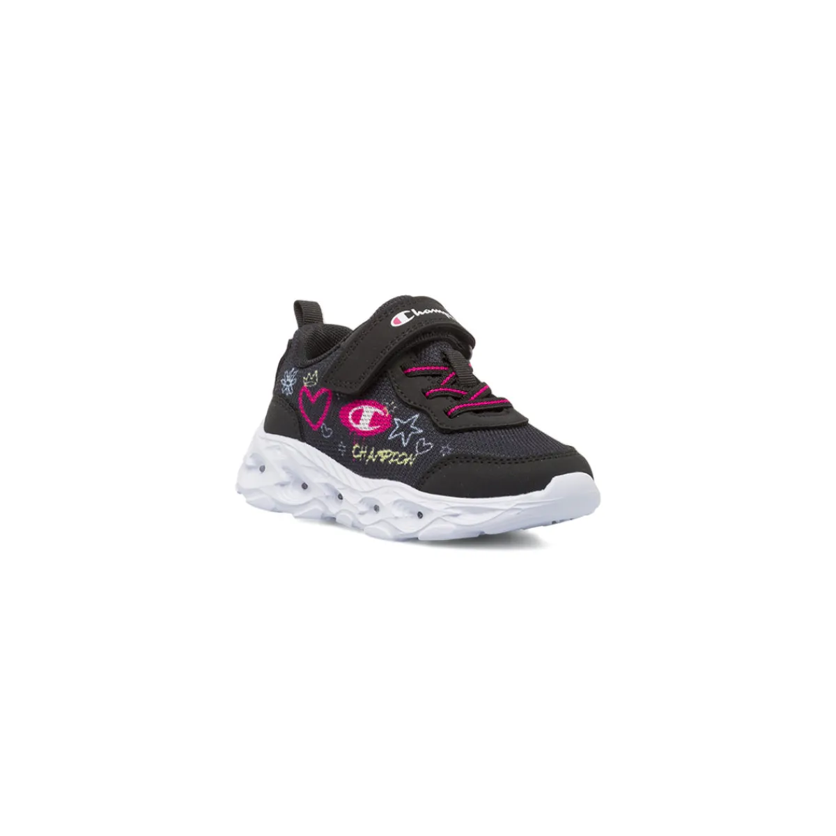 Le sneakers nere da Bambina Champion sono perfette per un look casual e di tendenza. Realizzate in materiale tessile, presentano una tomaia nera con divertenti dettagli graffiti rosa e bianchi. La chiusura con strappo e lacci elastici assicura una calzata comoda e sicura. La suola in gomma garantisce leggerezza e aderenza, ideali per giocare e divertirsi. La soletta in materiale tessile offre comfort e traspirabilità. Ad ogni passo si illuminano per dare un tocco ancora più chic. Perfette per tutti i giorni!