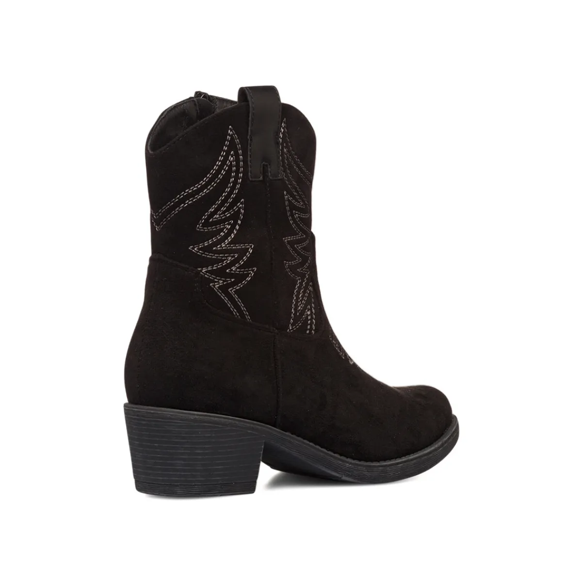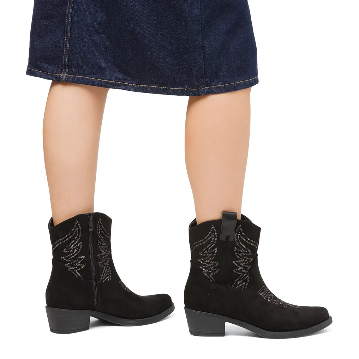 Stivaletti da donna Lora Ferres in similpelle colore nero effetto scamosciato, dettaglio cinturino, zip laterale e tacco alto 5 cm.