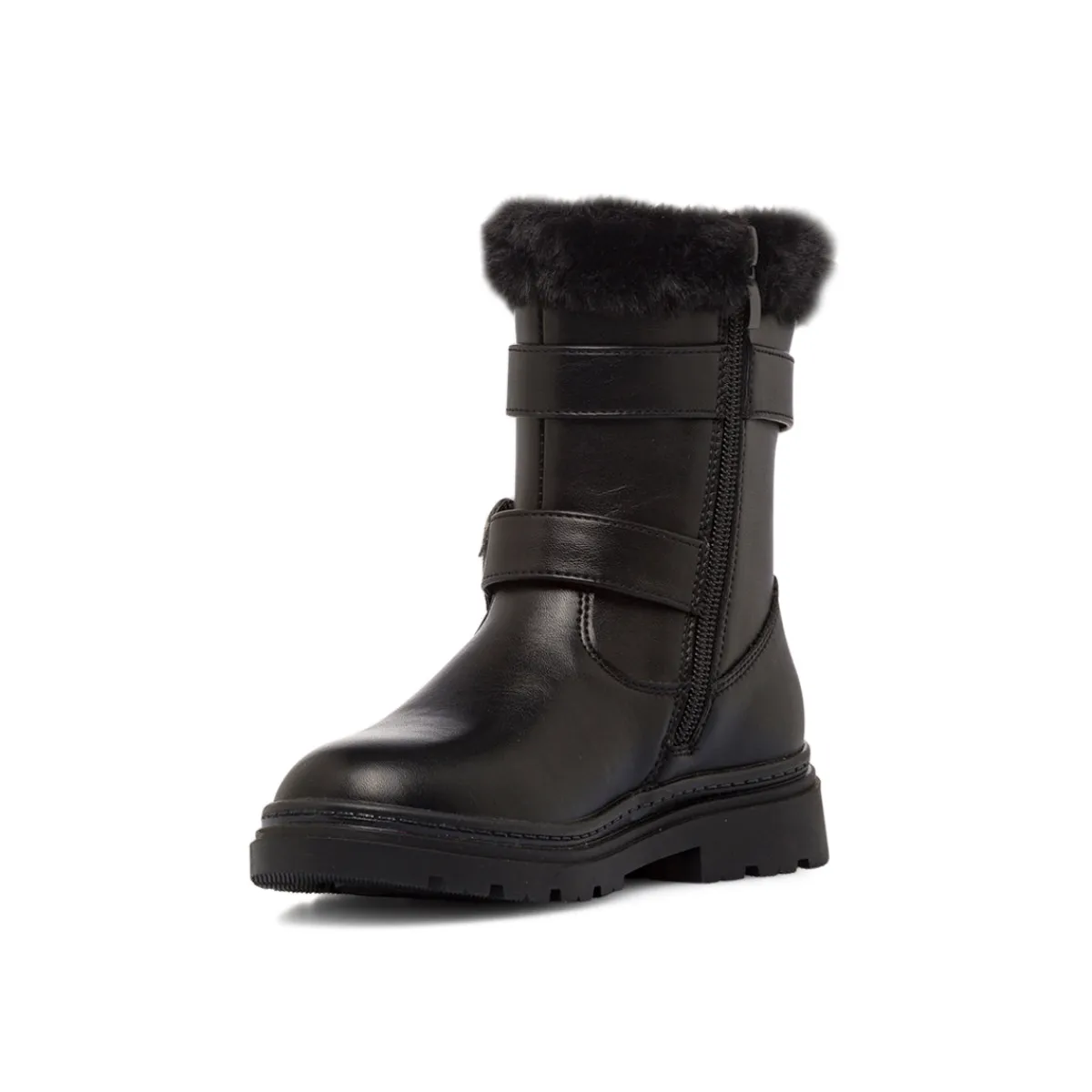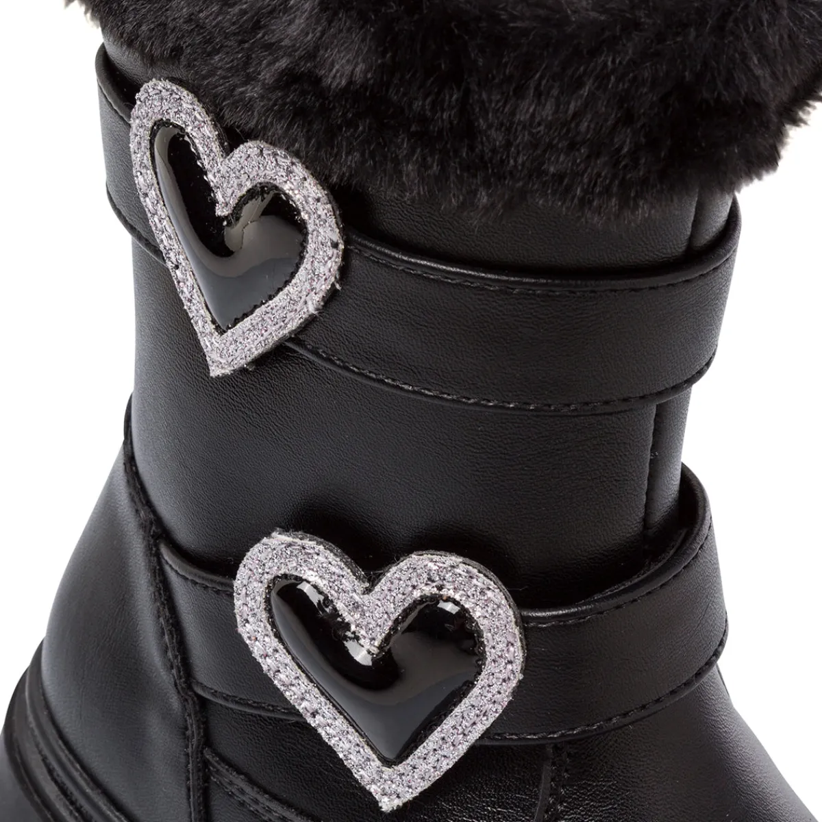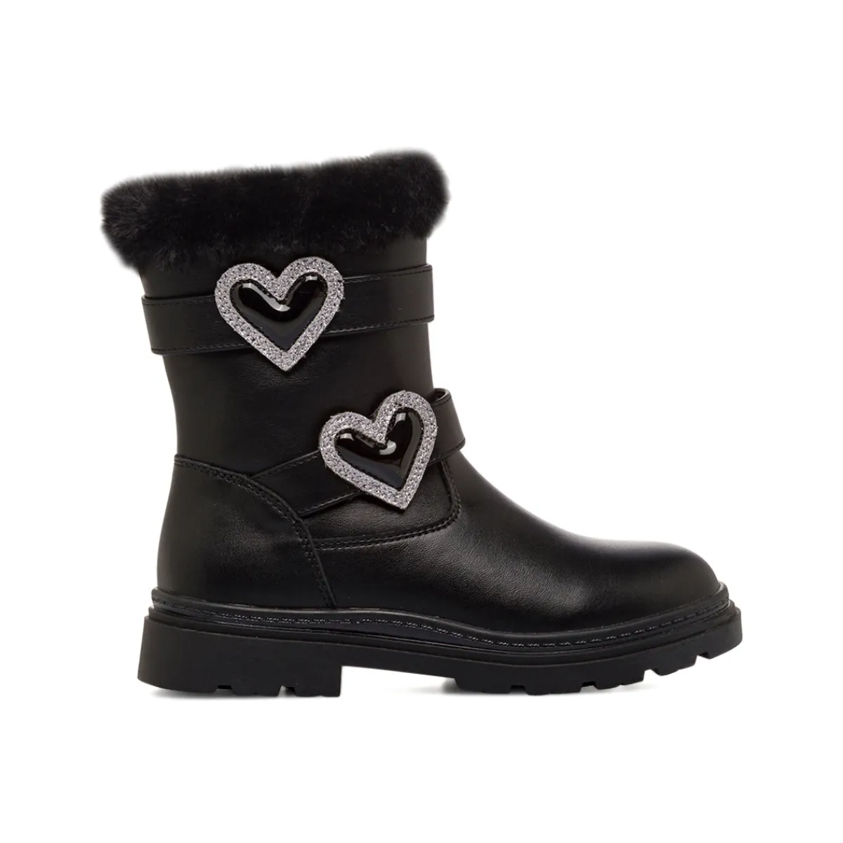 Perfetti per l’inverno, questi stivaletti da Ragazza Swish Jeans neri combinano stile e calore. Realizzati in similpelle resistente, presentano una chiusura pratica con zip laterale. Il design è arricchito da due cinturini con fibbie a forma di cuore decorate con strass scintillanti e un morbido bordo superiore in pelliccia sintetica. La suola robusta in materiale sintetico e la soletta garantiscono comfort.