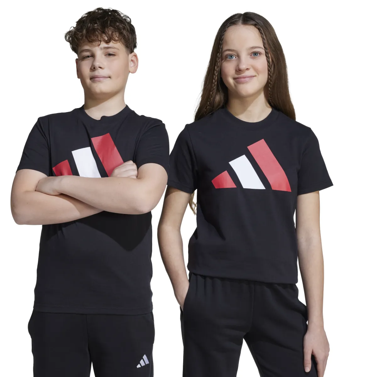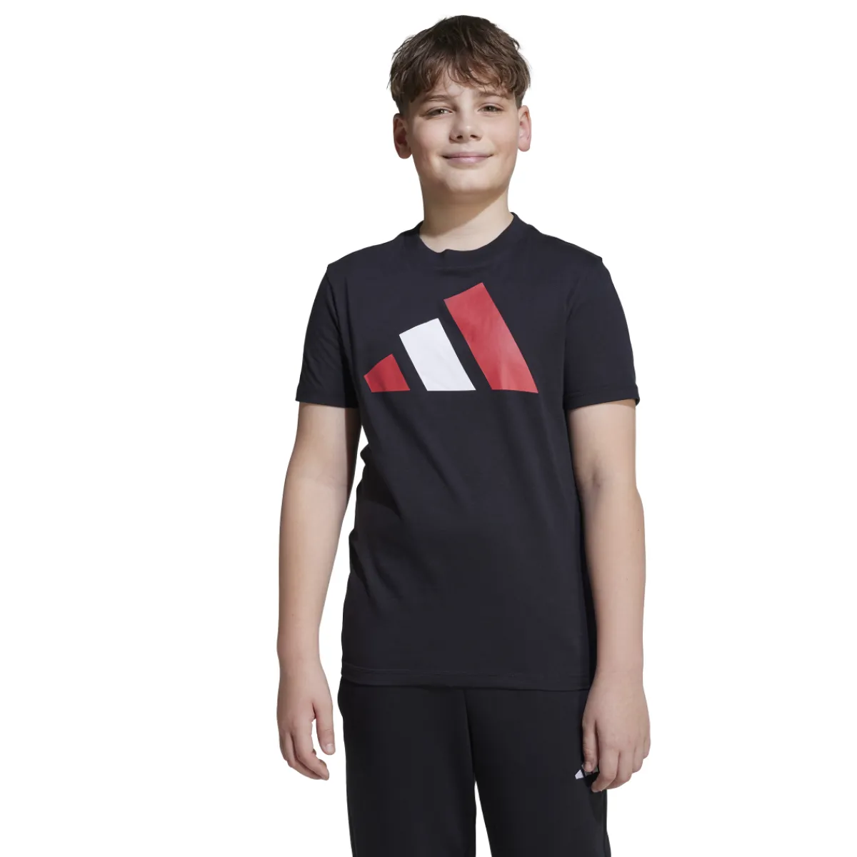 T-shirt nera da bambino e ragazzo, perfetta per il tempo libero o l’attività sportiva. Il logo adidas a contrasto rosso e bianco aggiunge un tocco di stile inconfondibile. Realizzata in morbido cotone, garantisce comfort e vestibilità ottimale. Ideale per la scuola, lo sport o semplicemente per un look casual di tendenza.