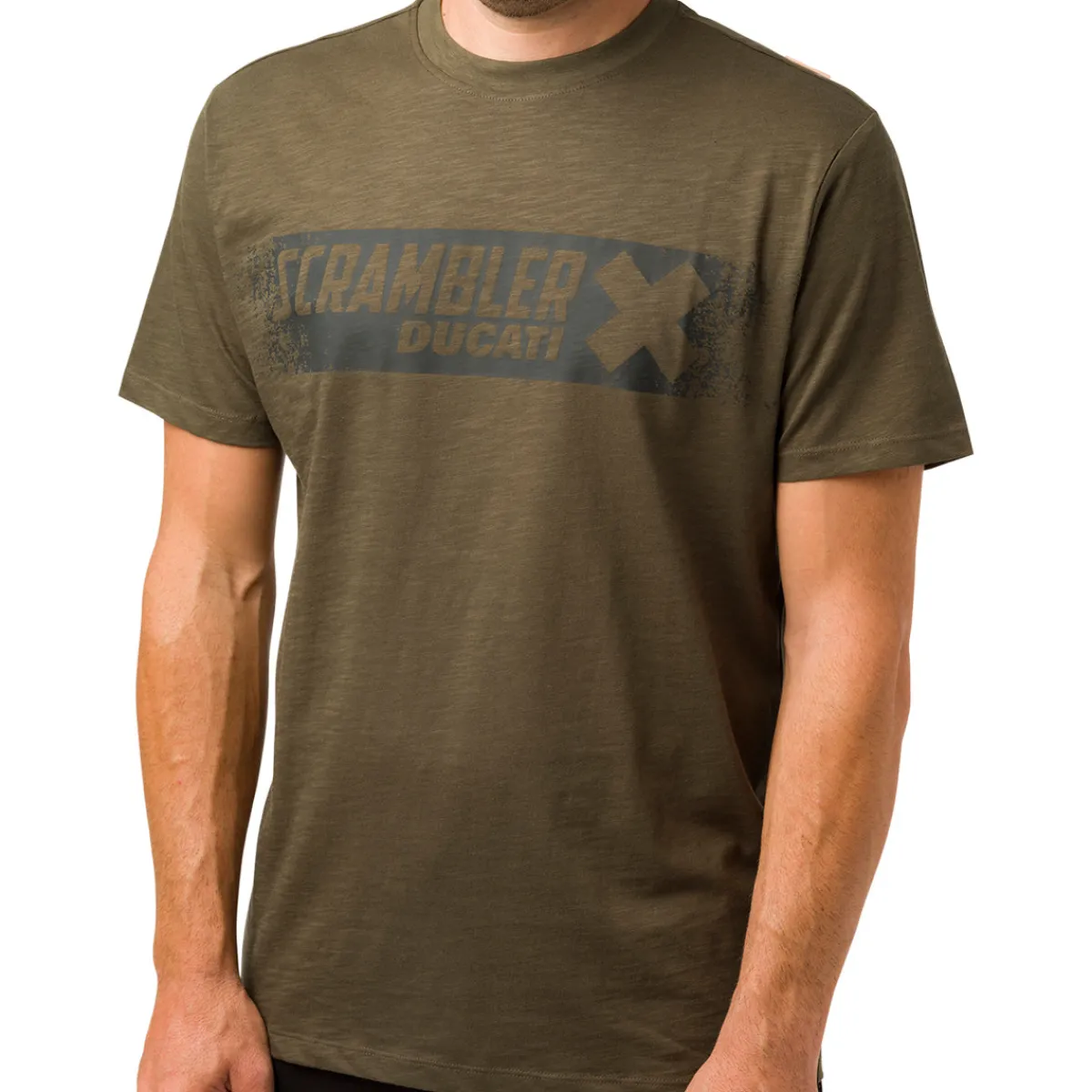 T-shirt da uomo Ducati Scrambler in cotone colore verde militare con logo frontale.