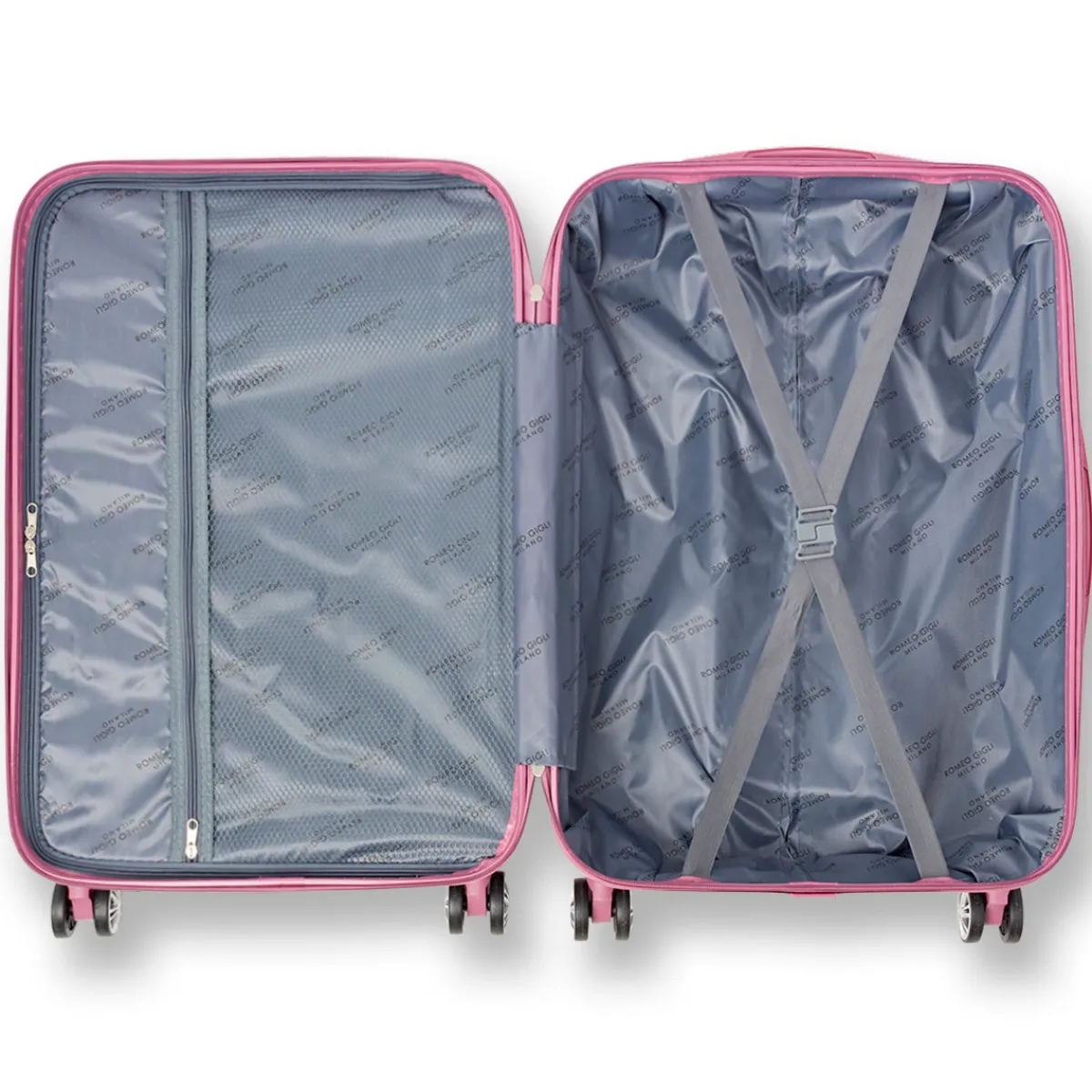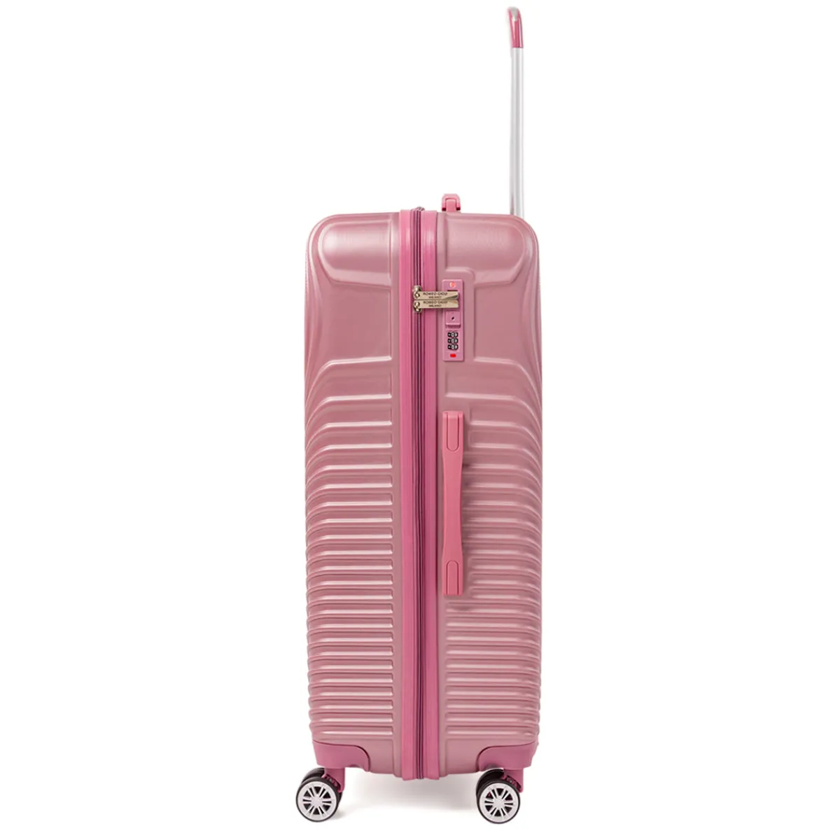 Viaggia con eleganza con la valigia grande rosa antico Romeo Gigli Milano. Dotata di ruote multidirezionali per la massima praticità e chiusura a codice numerico per la sicurezza, è perfetta come trolley da stiva. L’interno in poliestere è studiato per mantenere ordine e comfort in ogni viaggio.