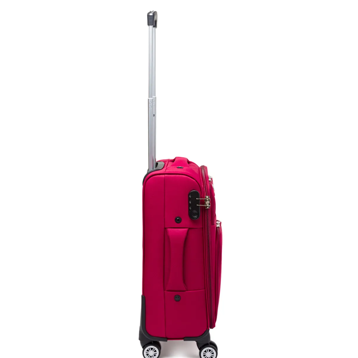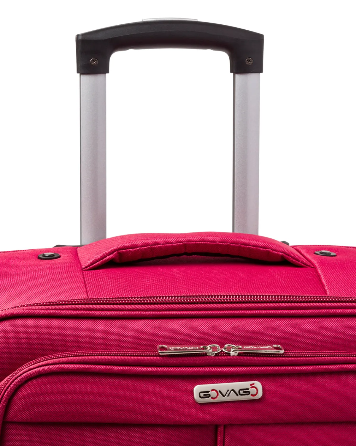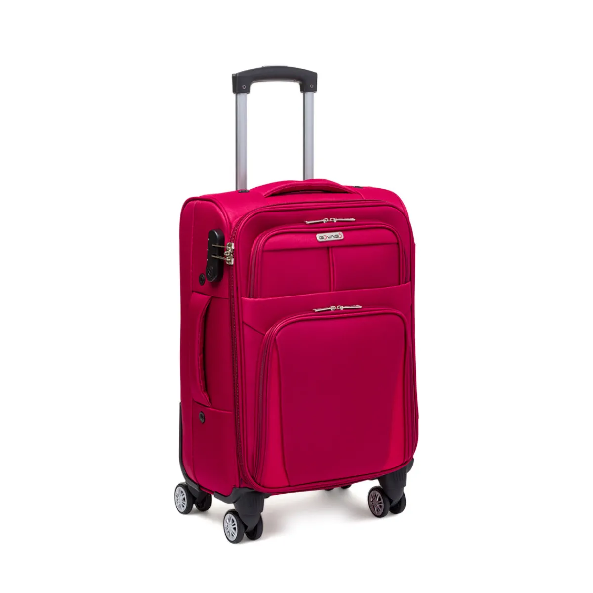 Trolley Bagaglio a mano Govago in tessuto colore rosso, 4 ruote bidirezionali, manico retrattile, chiusura con zip a combinazione, maniglia superiore e laterale integrata, interno foderato, scomparto principale con fasce ferma abiti e tasche esterne con dettaglio a contrasto.