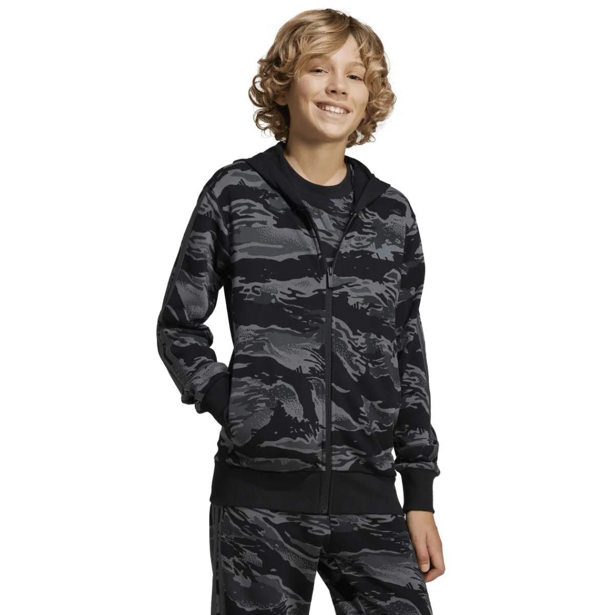 Questa felpa con zip da ragazzo è perfetta per affrontare le giornate più fresche con stile. Il design nero con stampa camouflage aggiunge un tocco di originalità, mentre la zip frontale consente una facile regolazione. Realizzata con materiali di alta qualità, garantisce comfort e libertà di movimento. Ideale per il tempo libero o per le attività sportive, questa felpa è un must-have nel guardaroba di ogni ragazzo.
