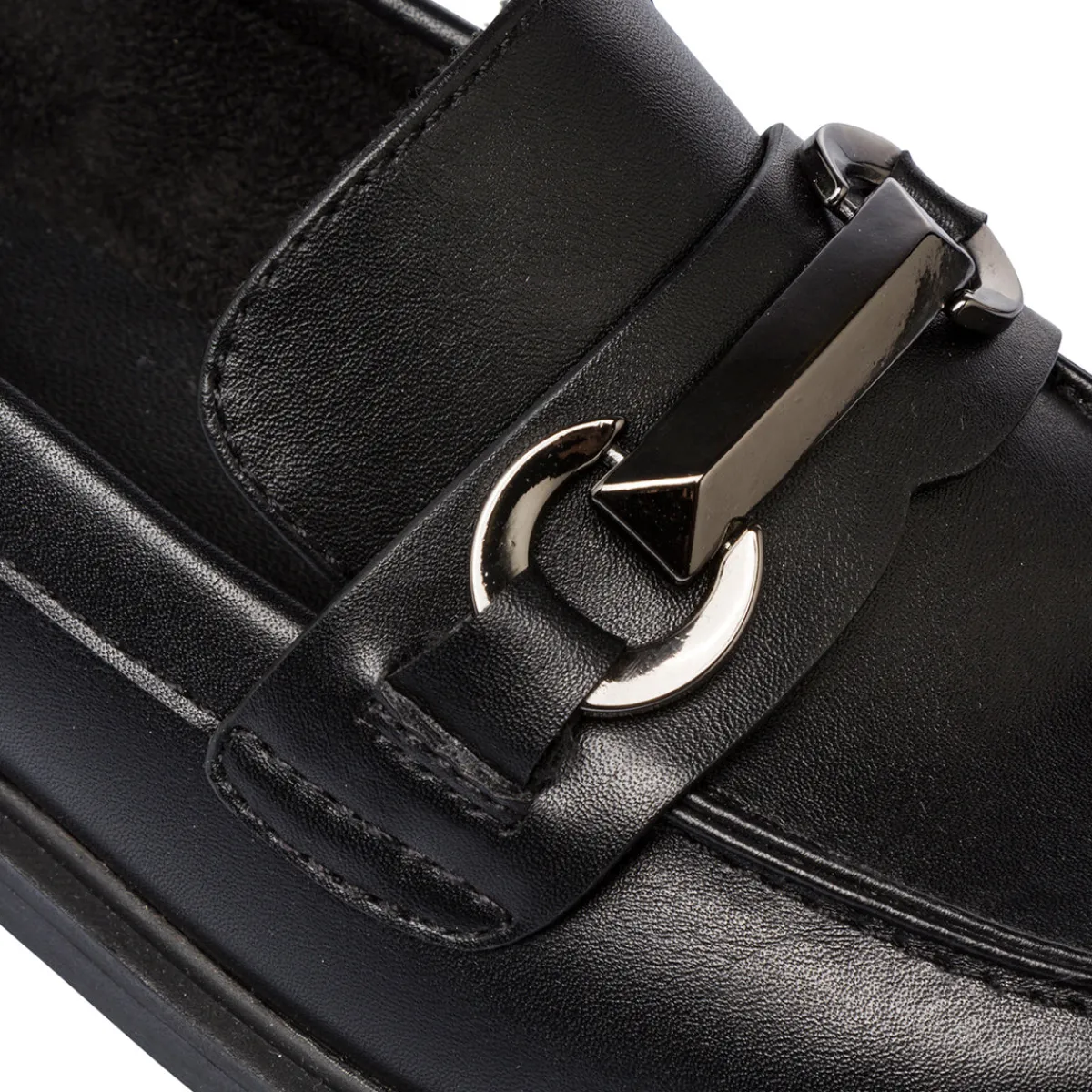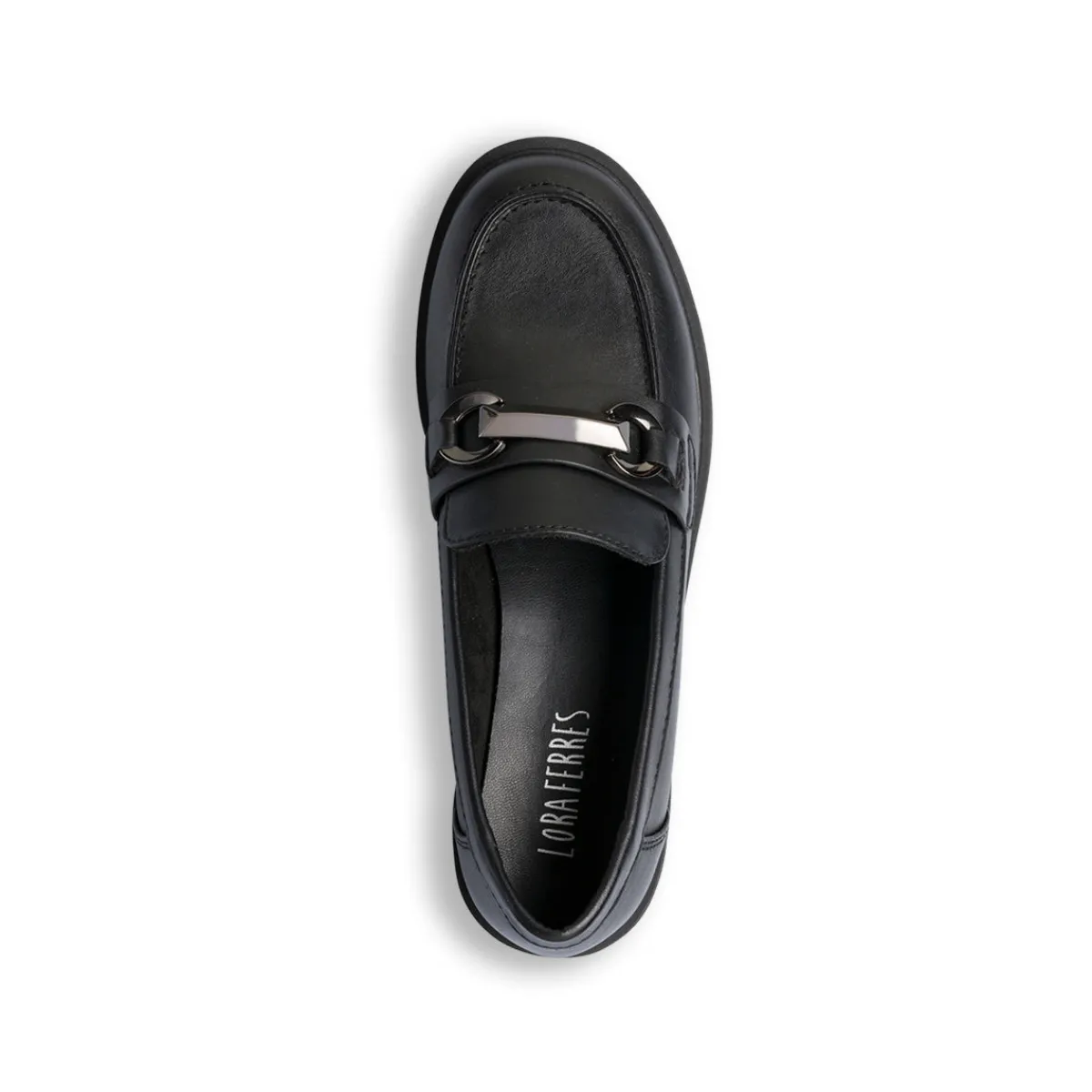 Mocassini da donna neri Lora Ferres con fibbia e suola chunky. La tomaia è in materiale sintetico. I dettagli della fibbia argentata rendono questo modello unico e versatile. Perfetti per un look casual chic.