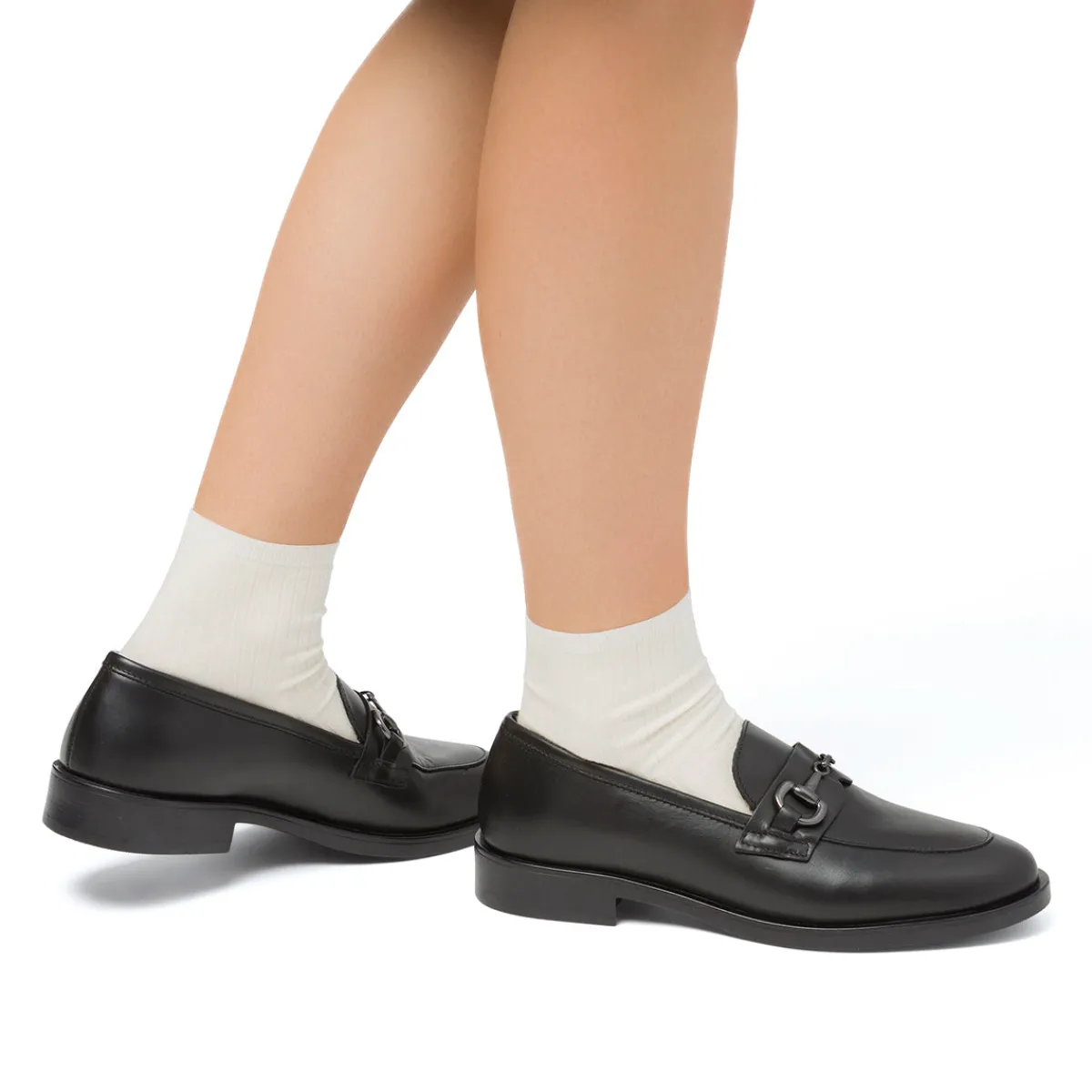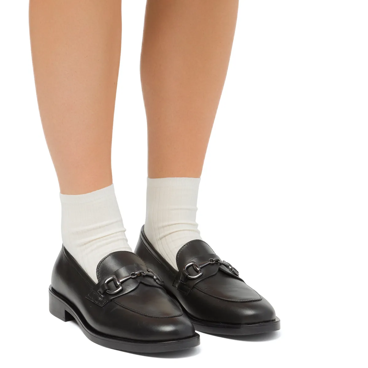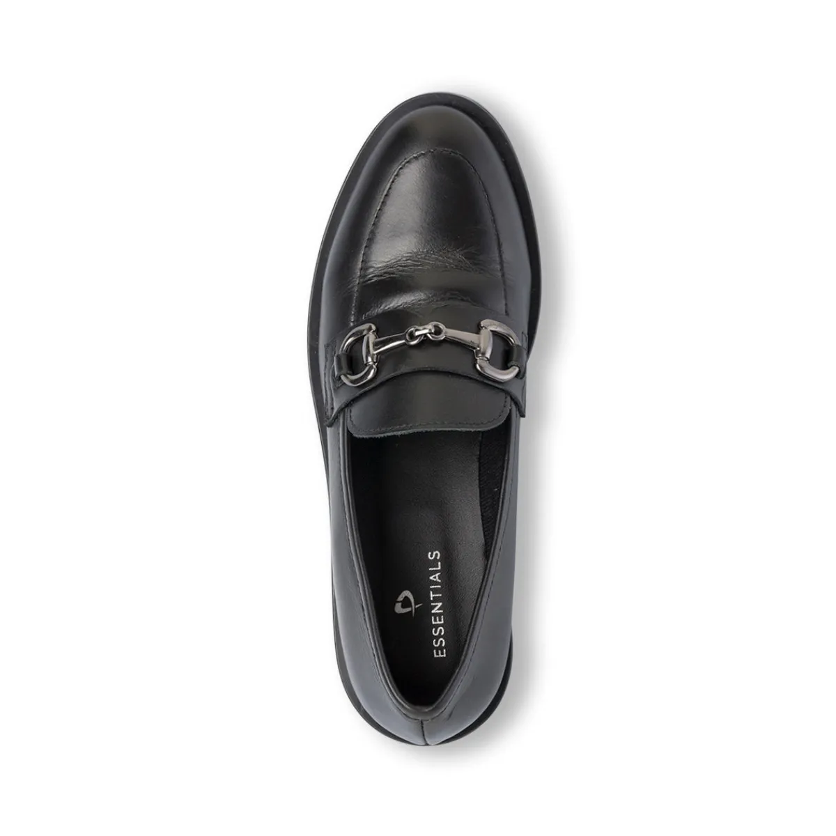 Mocassini da donna P Essentials con tomaia in pelle colore nero, e morsetto in metallo.