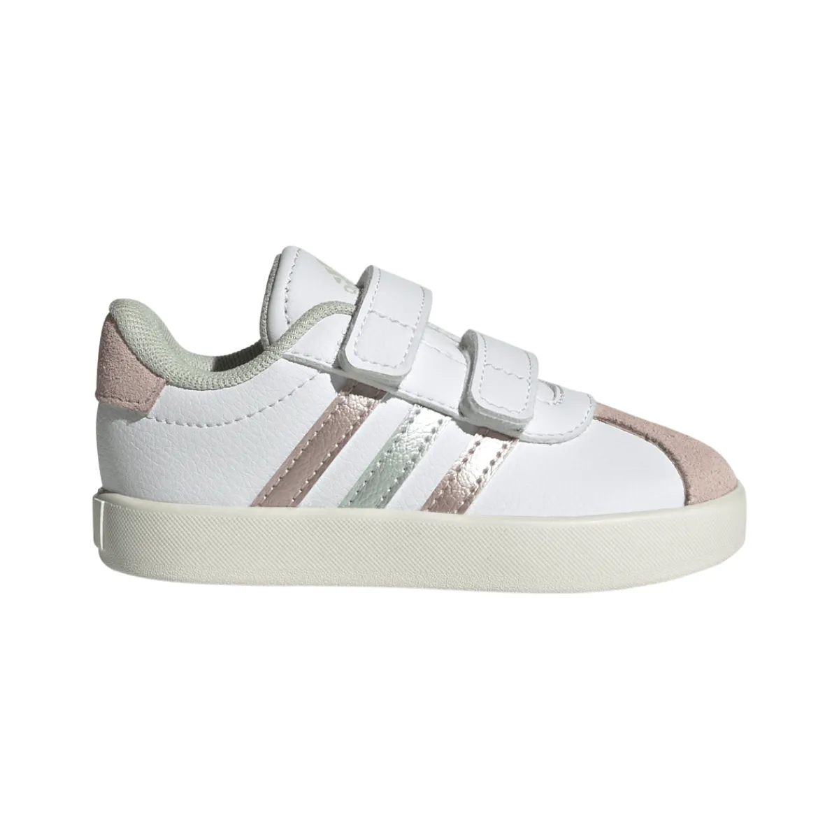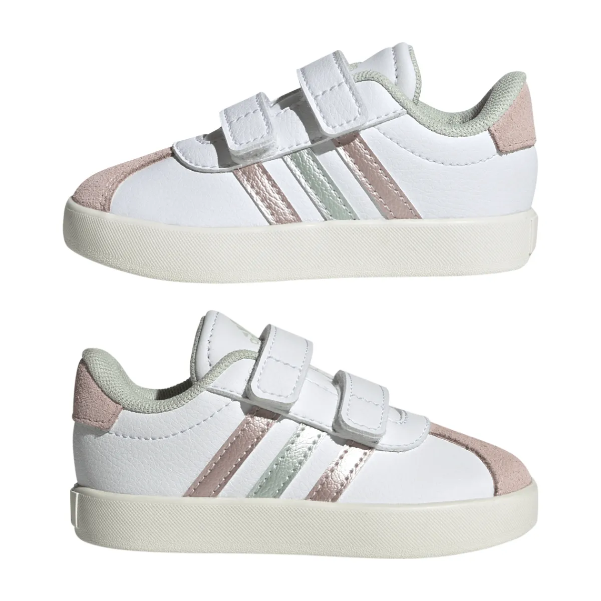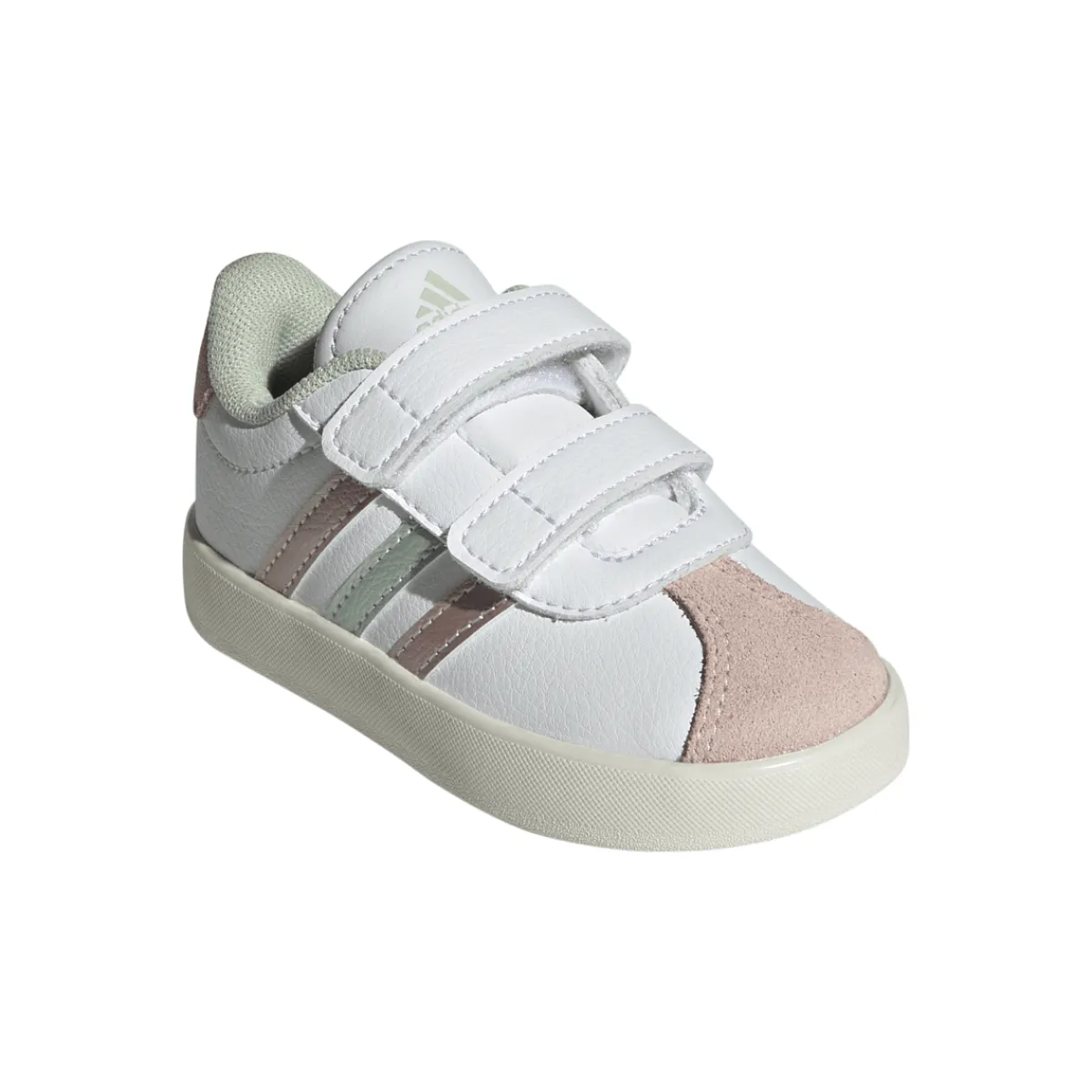 Queste sneakers bianche e rosa da bambina sono perfette per i primi passi. La chiusura a strappo le rende facili da indossare e togliere, mentre la tomaia in pelle sintetica garantisce comfort e durata. Il design semplice ed elegante è arricchito da dettagli rosa e verdi che le rendono ideali per qualsiasi occasione. Un tocco di stile per le piccole fashioniste!