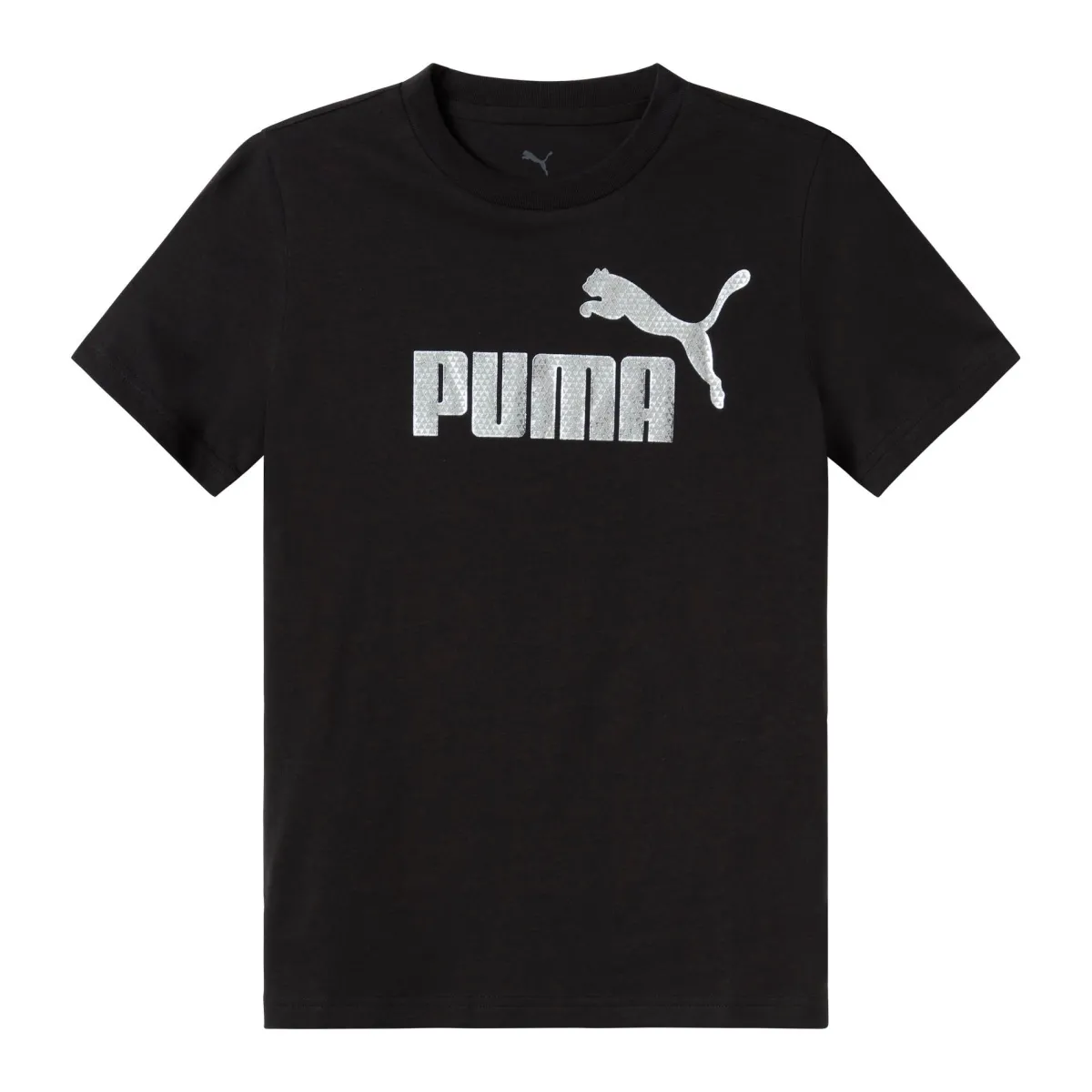 T-shirt nera da bambina e ragazza, perfetta per un look casual e sportivo. Il logo Puma argentato aggiunge un tocco di stile. Realizzata in morbido tessuto, è ideale per il comfort quotidiano. Un capo versatile e di tendenza, perfetto per la scuola o il tempo libero.