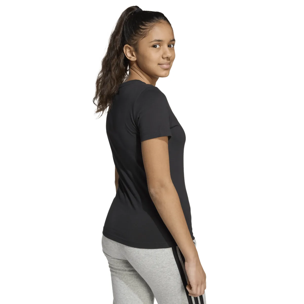 T-shirt nera da bambina, perfetta per il tempo libero e l’attività sportiva. Il logo adidas in argento metallizzato aggiunge un tocco di stile. Realizzata in morbido tessuto, garantisce comfort e libertà di movimento. Ideale per la scuola, lo sport o semplicemente per giocare. Un capo versatile e di qualità, firmato adidas.