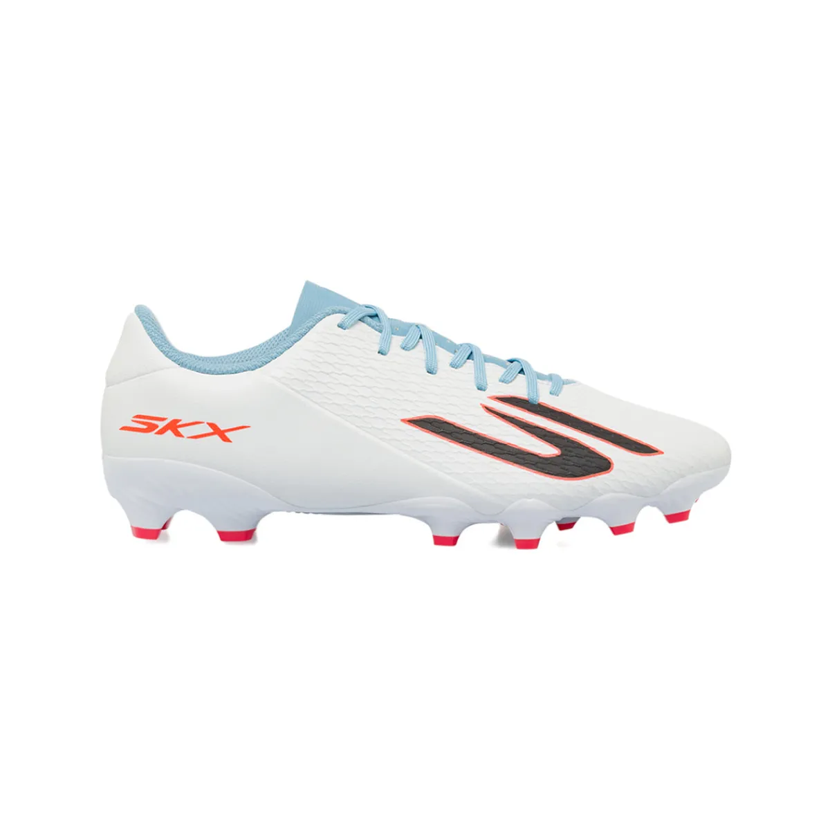 Le scarpe da calcio Skechers SKX combinano un design aerodinamico e materiali tecnici per offrire massima velocità e controllo palla. La tomaia in materiale sintetico testurizzato garantisce una calzata stabile e reattiva, mentre i tacchetti sagomati assicurano ottima aderenza sui terreni naturali. Il look bianco con dettagli arancio fluo e logo Skechers oversize dona grinta e stile in campo. Perfette per allenamenti e partite, queste scarpe da calcio uomo uniscono leggerezza, supporto e prestazioni firmate Skechers Performance.