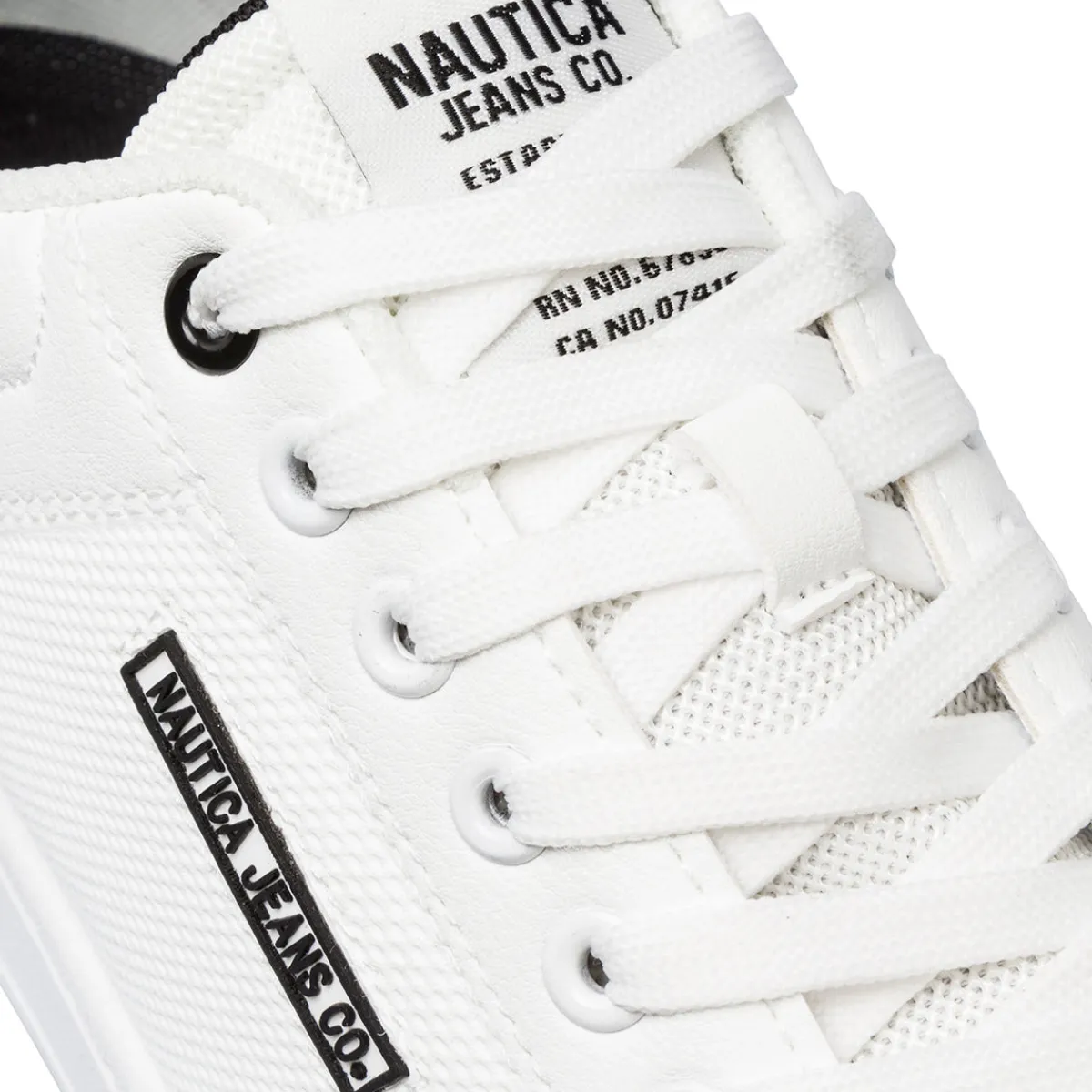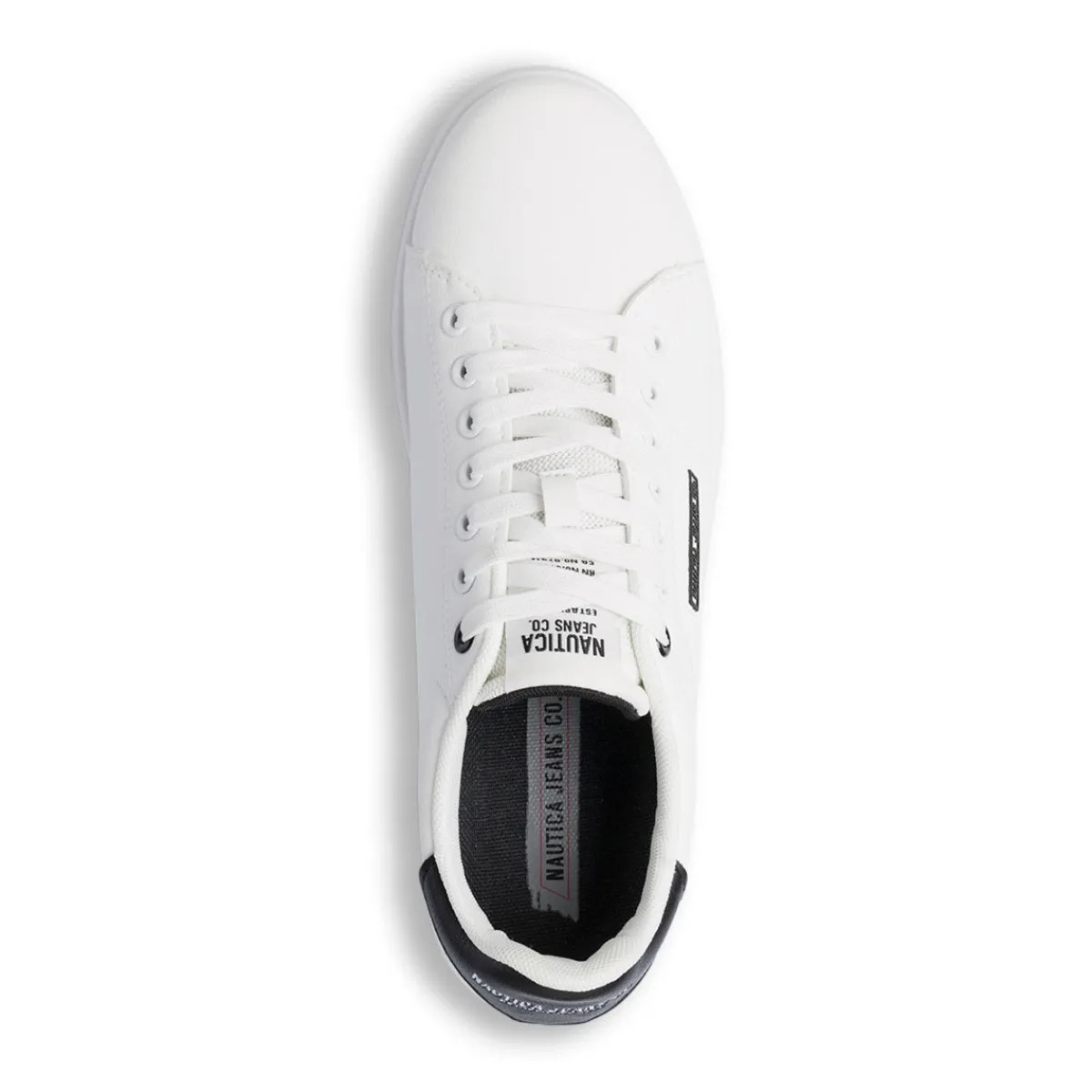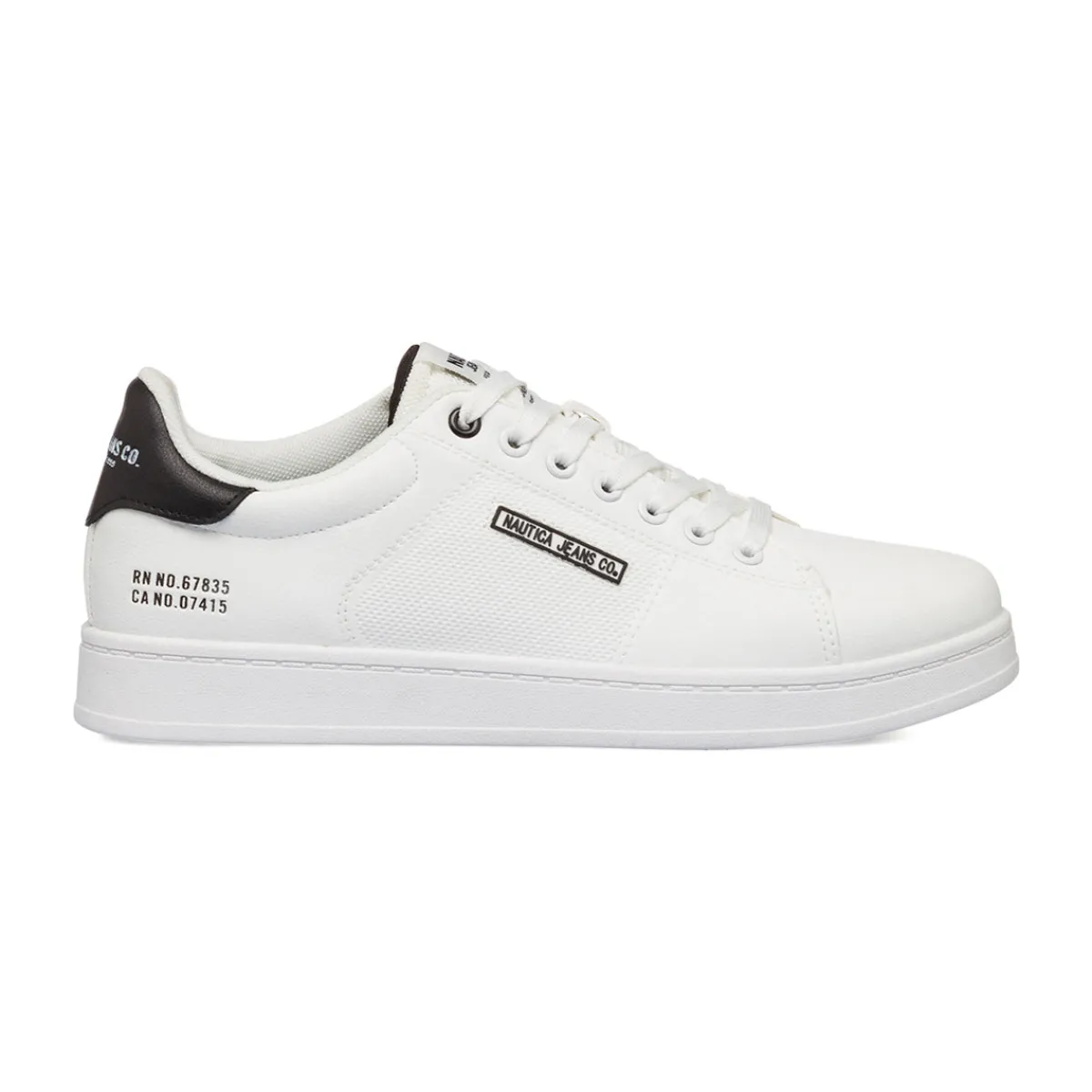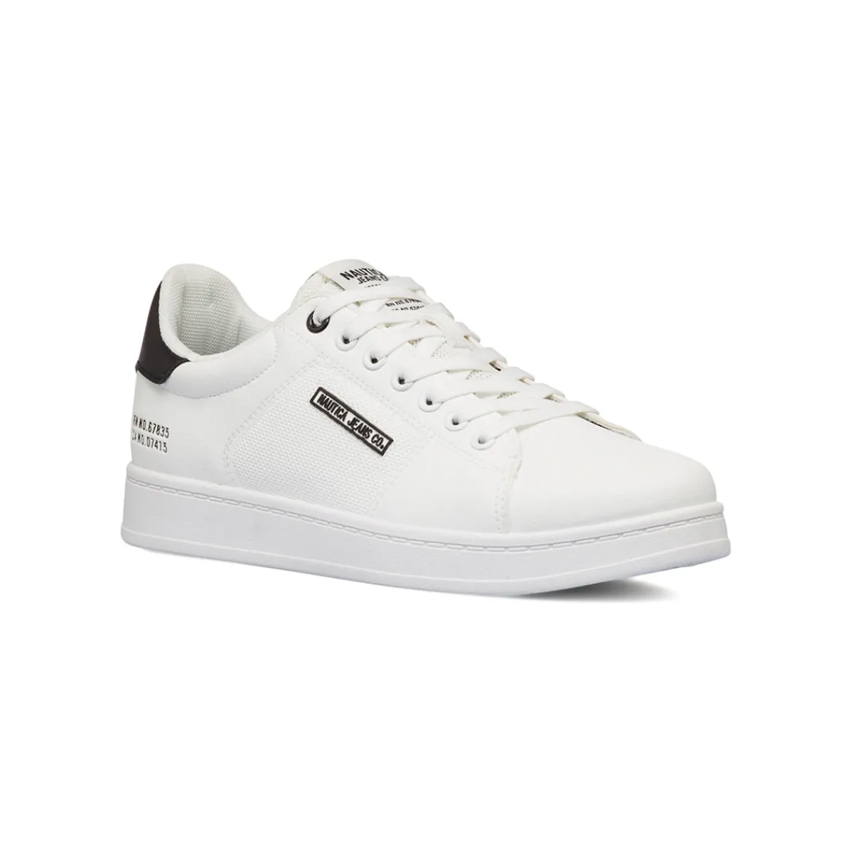 Sneakers bianche da Uomo Nautica Jeans, perfette per un look casual e sportivo. Realizzate in similpelle, con suola in gomma e soletta in materiale tessile. Il design semplice e moderno le rende versatili e ideali per ogni occasione.