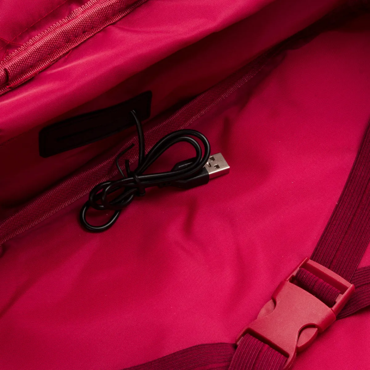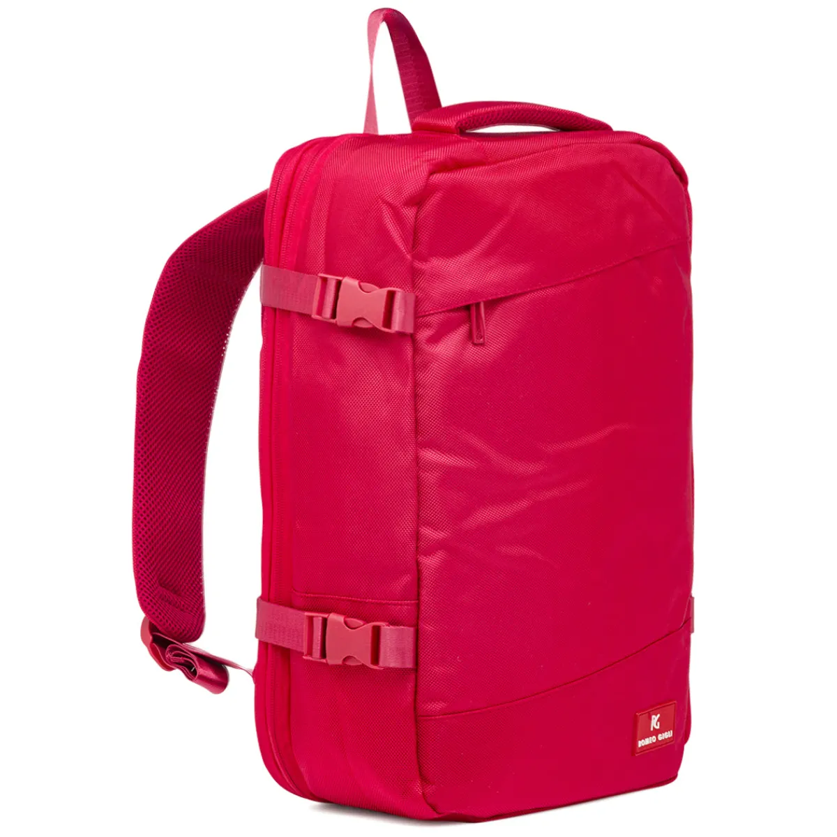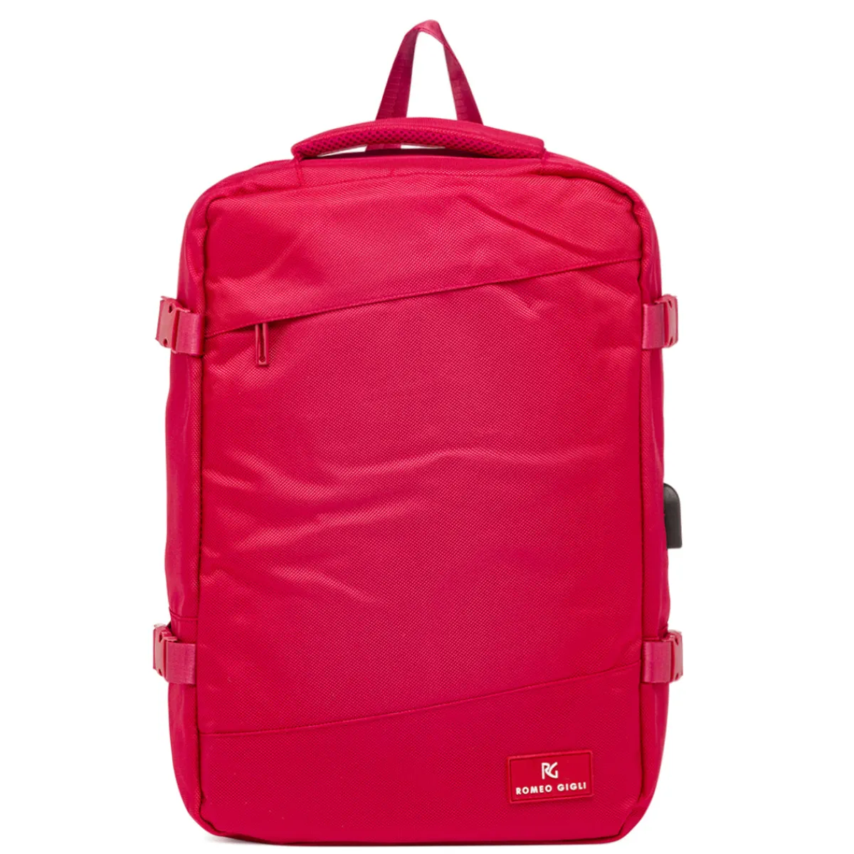 Zaino da viaggio colore rosso in poliestere firmato Romeo Gigli. Scomparto con ferma abiti e mega tasca interna. Espandibile grazie alla doppia zip. Cavo USB incorporato. Questo zaino bagaglio a mano è stato progettato per rispettare perfettamente le dimensioni richieste dalle principali compagnie aeree low cost. Compatibile con le misure standard del bagaglio a mano gratuito di Ryanair (AxPxL: 40x20x25 cm). rientra anche nelle dimensioni consentite da easyJet (AxPxL: 45x20x36cm), Wizz Air (AxPxL: 40x20x30 cm) e Vueling (AxPxL: 40x20x30 cm). Il design compatto e funzionale lo rende ideale per viaggi brevi, garantendoti di passare i controlli del gate senza supplementi imprevisti.