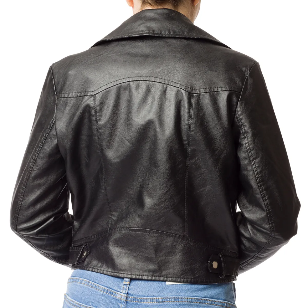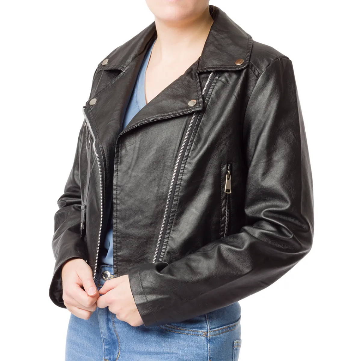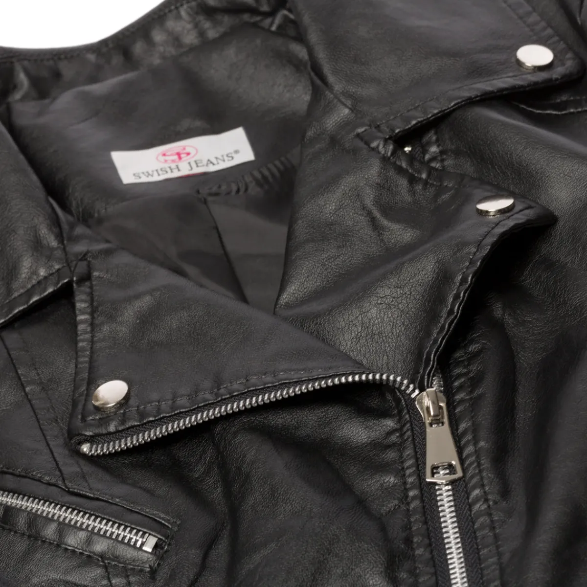 Giacca nera effetto pelle da donna Swish Jeans con chiusura con zip e tasche anteriori.