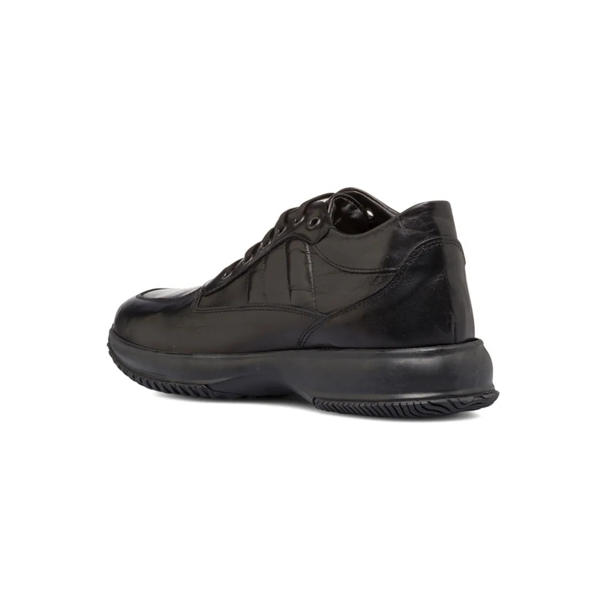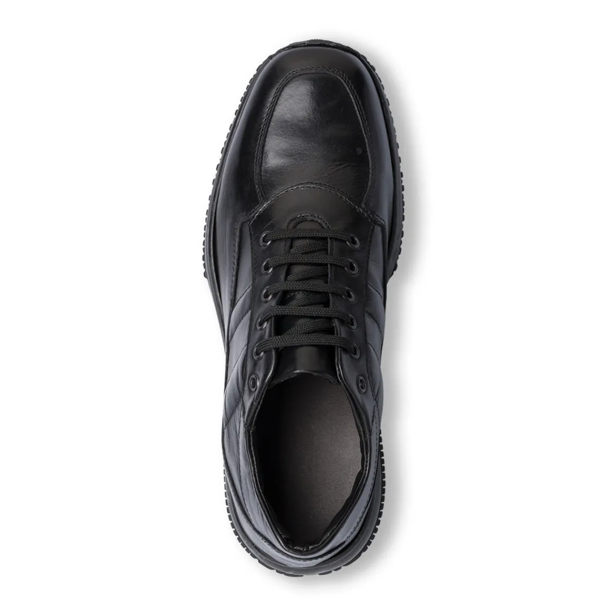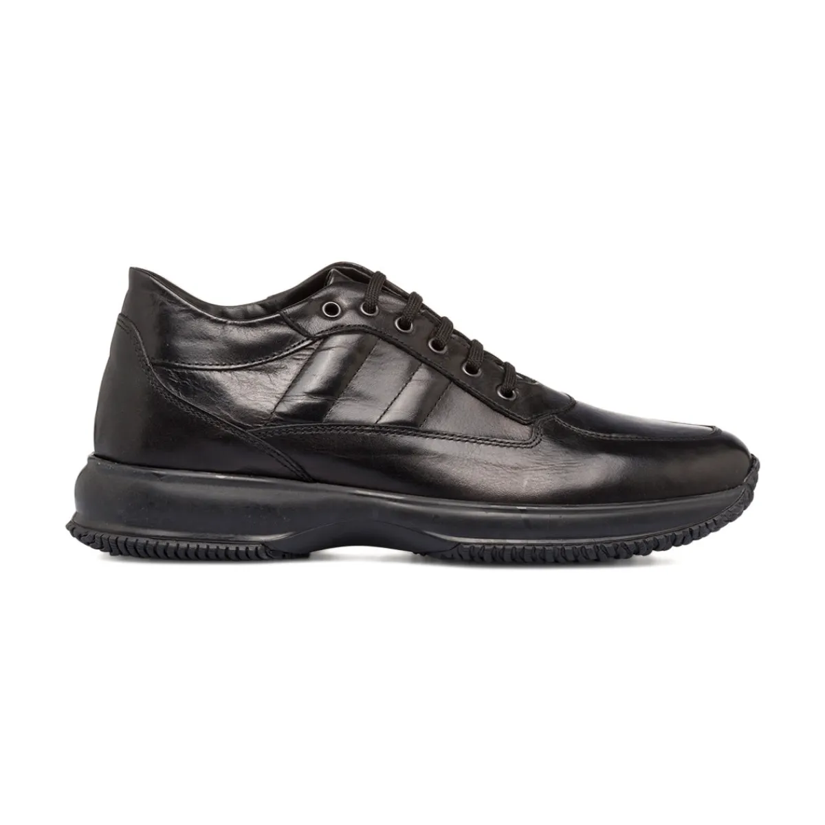 Scarpe casual da uomo Primopiano di colore nero in pelle con occhielli in metallo.