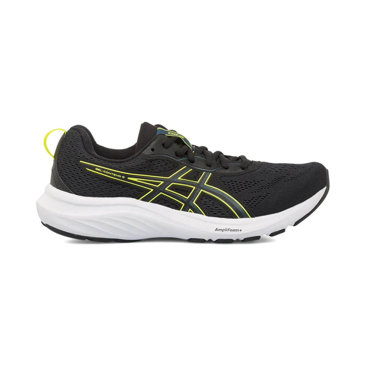 Scarpe da Running nere da Uomo firmate Asics Gel-contend 9, con inserti giallo fluo. Realizzate con tomaia in tessuto mesh traspirante, rivestimento interno in tessuto e suola Amplifoam Plus. L’ammortizzazione dell’intersuola assicura un’andatura più morbida e confortevole rispetto all’ammortizzazione AMPLIFOAM standard. Suola con tecnologia Gel sul tallone per ammortizzare al massimo gli urti.