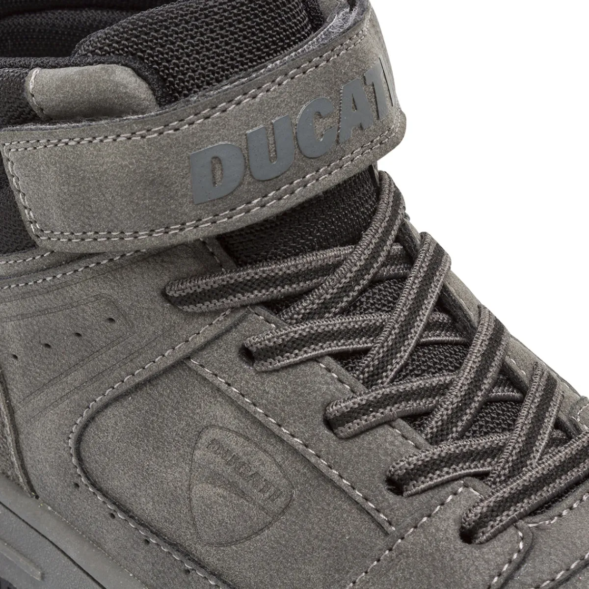 Queste sneakers alte grigie da bambino del marchio Ducati sono perfette per un look casual e grintoso. Realizzate con tomaia in similpelle e dettagli effetto scamosciato, offrono comfort e stile. Il design accattivante, con dettagli in nero, le rende ideali per il tempo libero. La suola in materiale sintetico garantisce una buona aderenza. La chiusura con strappo e lacci elastici rendono la calzata facile e veloce. Perfette per completare l’outfit del tuo piccolo!