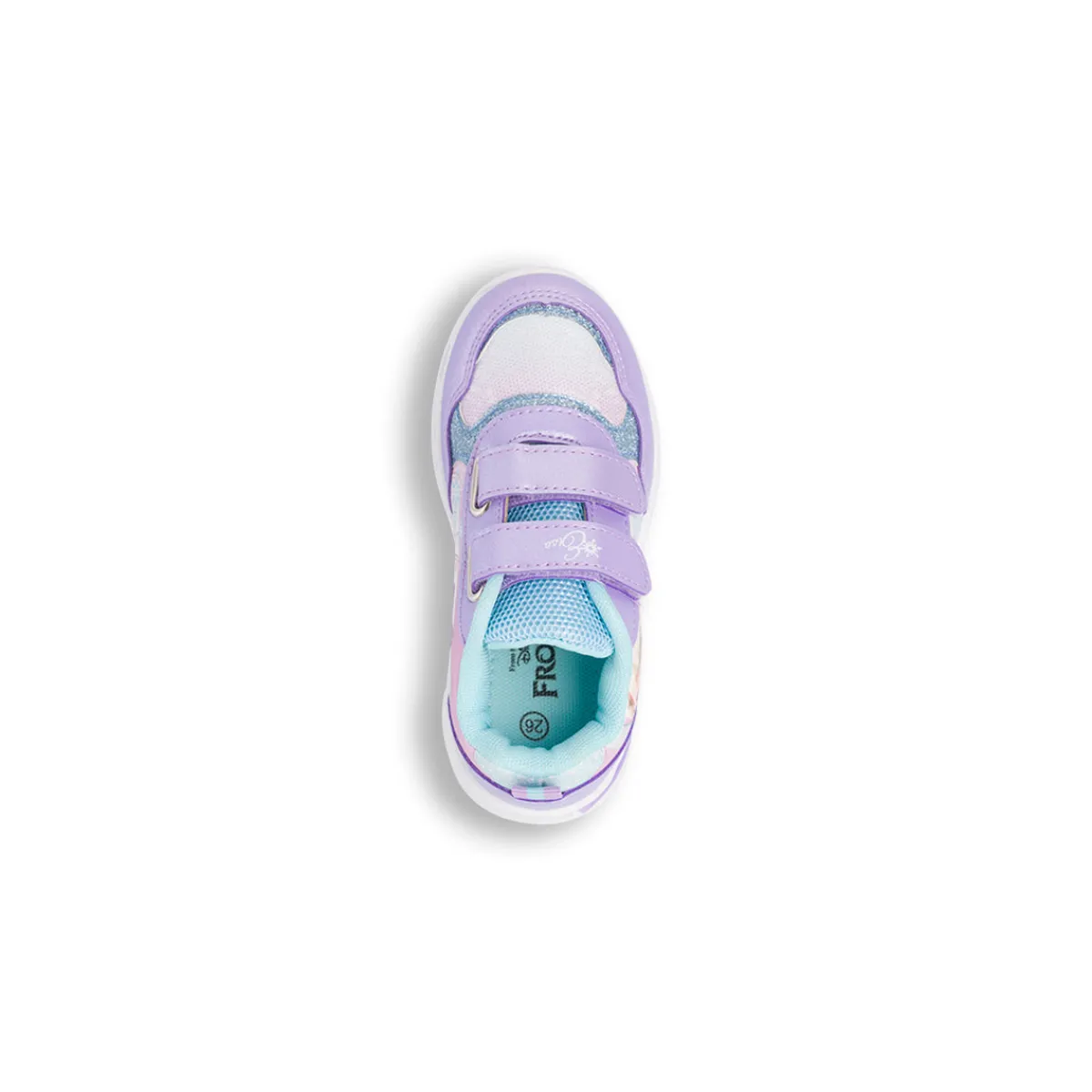 Queste sneakers lilla da bambina sono perfette per le piccole fan di Frozen! Con la stampa di Elsa e dettagli glitterati, queste scarpe renderanno felici le bambine più fashion. Realizzate in materiale sintetico, sono comode e facili da indossare grazie alle pratiche chiusure a strappo. La suola in materiale sintetico garantisce leggerezza e resistenza. Un tocco magico per i passi delle tue piccole principesse!