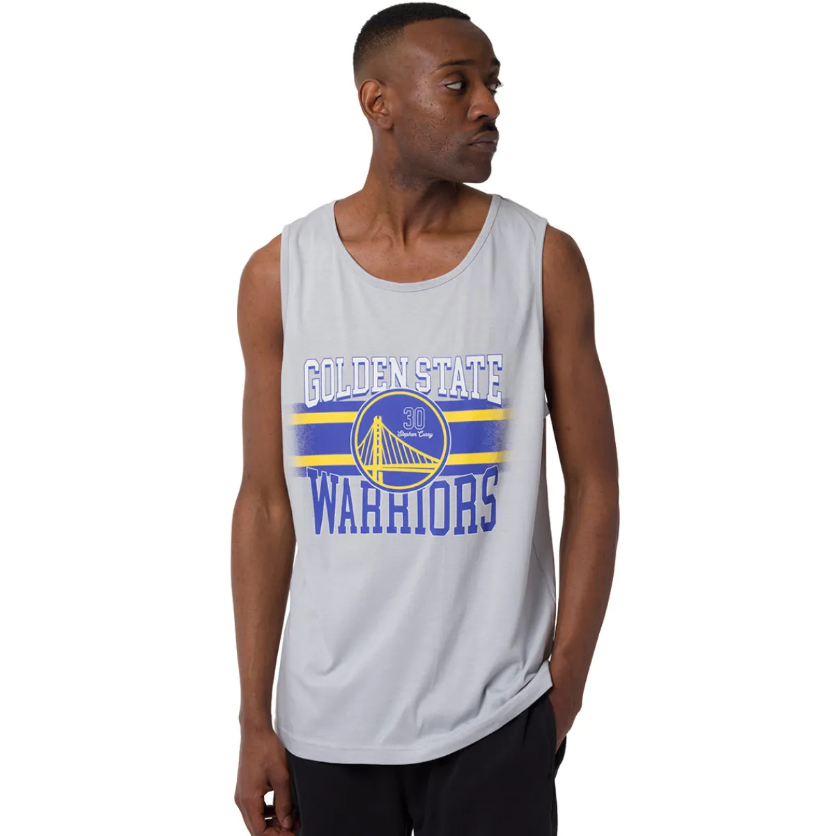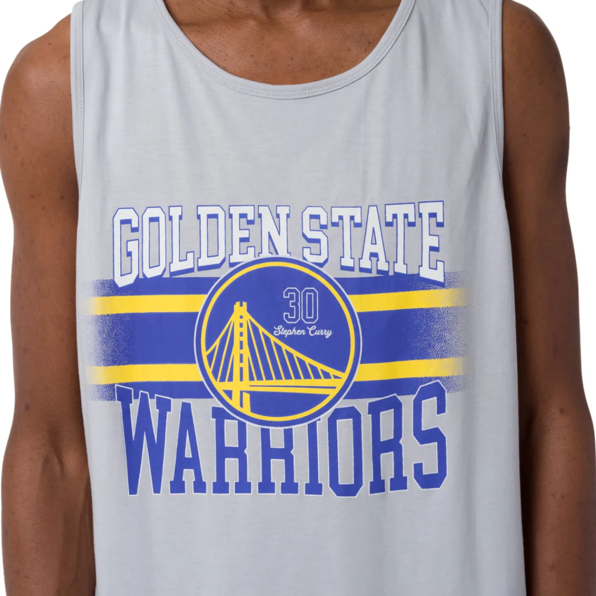 Canotta Grigia da Uomo del brand Golden State Warrior Nba, realizzata in cotone con mega stampa frontale logo della squadra e dettaglio giocatore Stephen Curry. Vestibilità oversize.
