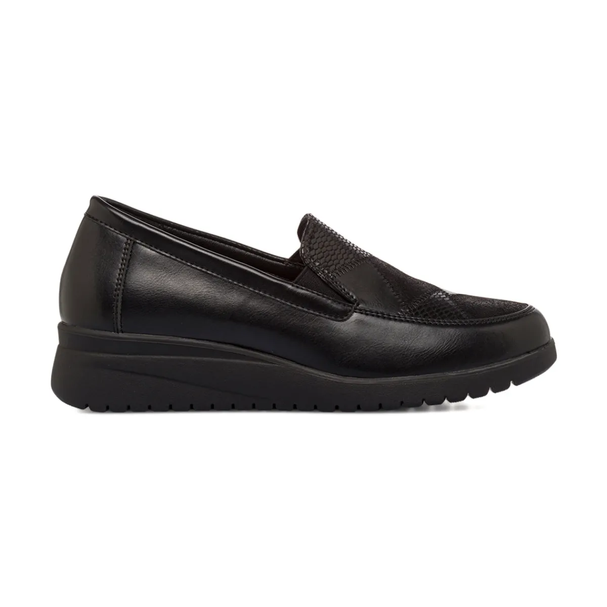 Lasciati conquistare dai Mocassini comfort neri da Donna P Soft, perfetti per un look casual chic. Il design elegante, impreziosito dall’effetto pitonato su una sezione della tomaia, si abbina alla comodità di una suola in materiale sintetico e una soletta in materiale tessile. Ideali per ogni occasione, questi mocassini sono realizzati in similpelle di alta qualità e offrono un comfort superiore grazie alla tecnologia P Soft. Un tocco di stile e comodità per il tuo outfit quotidiano.