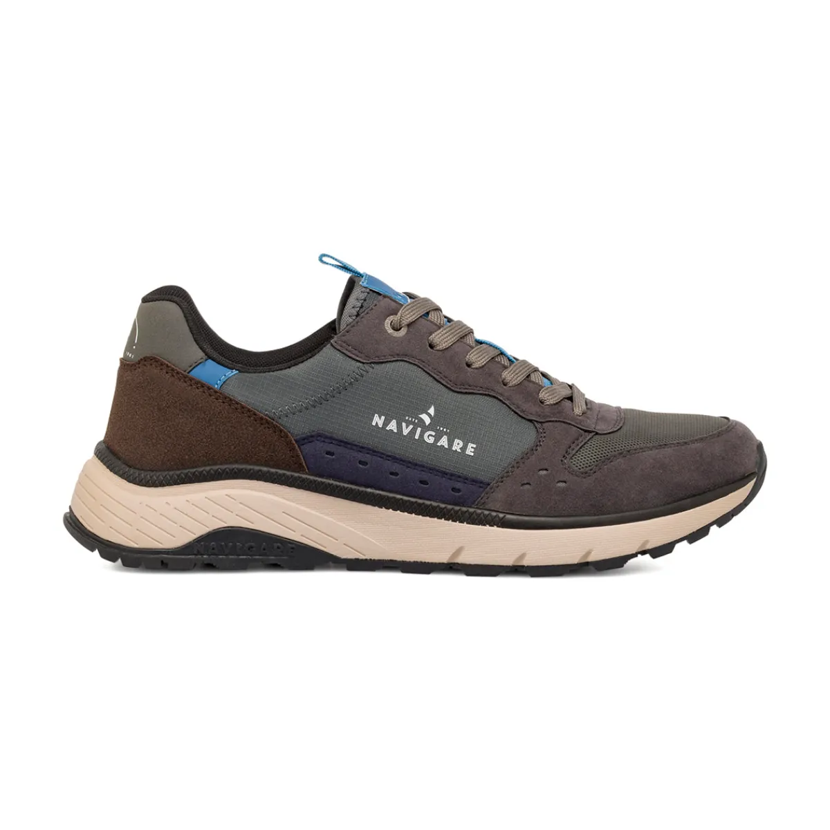 Sneakers grigie da uomo Navigare, perfette per un look casual e di tendenza. Realizzate con materiali di alta qualità, queste sneakers presentano una tomaia in tessuto e suede, garantendo comfort e resistenza. La suola in materiale sintetico offre un’ottima aderenza e durata. La soletta interna è in materiale sintetico per un maggiore comfort. Ideali per il tempo libero e le attività quotidiane. Un tocco di stile in ogni situazione.