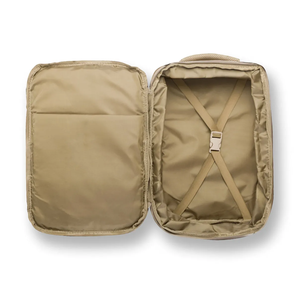 Zaino da viaggio colore champagne in poliestere firmato Romeo Gigli. Scomparto con ferma abiti e mega tasca interna. Espandibile grazie alla doppia zip. Cavo USB incorporato. Questo zaino bagaglio a mano è stato progettato per rispettare perfettamente le dimensioni richieste dalle principali compagnie aeree low cost. Compatibile con le misure standard del bagaglio a mano gratuito di Ryanair (AxPxL: 40x20x25 cm). rientra anche nelle dimensioni consentite da easyJet (AxPxL: 45x20x36cm), Wizz Air (AxPxL: 40x20x30 cm) e Vueling (AxPxL: 40x20x30 cm). Il design compatto e funzionale lo rende ideale per viaggi brevi, garantendoti di passare i controlli del gate senza supplementi imprevisti.