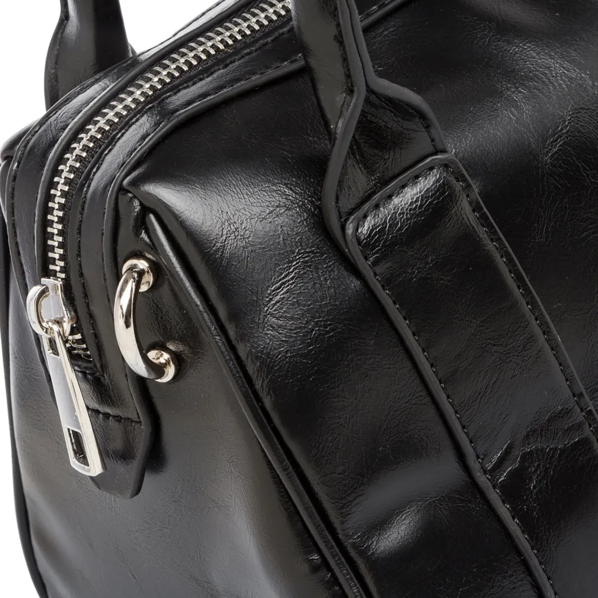 Borsa a mano bauletto da donna Lora Ferres in similpelle colore nero. Tracolla rimovibile e possibilità di trasformarla in una borsa a mano, interno foderato con tasche e chiusura con zip argentata.
