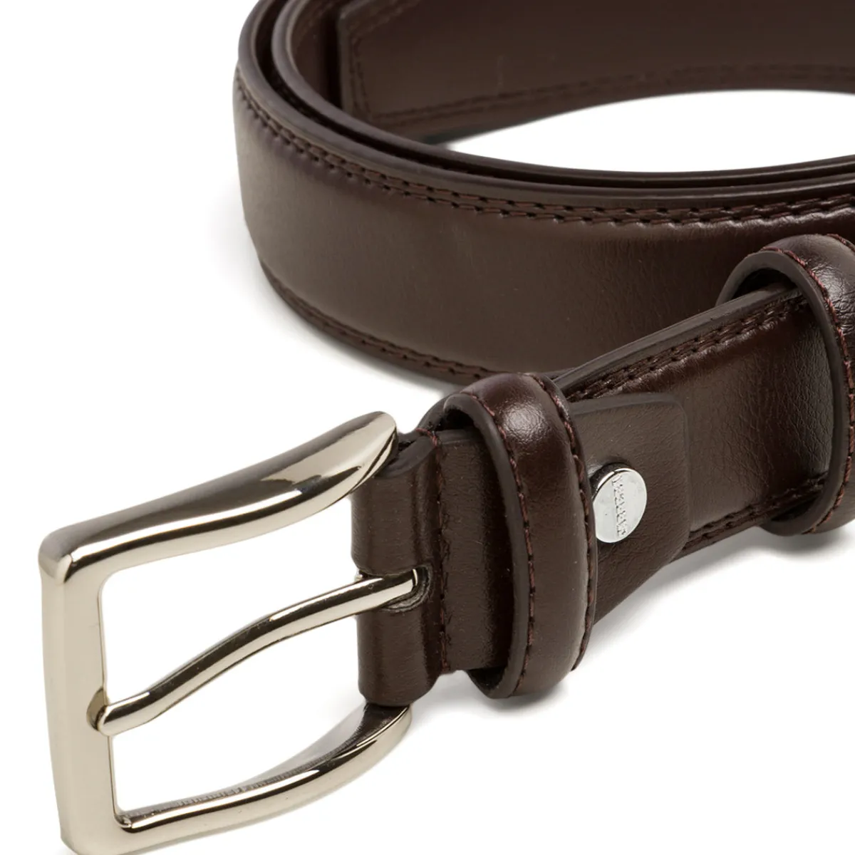 Cintura da uomo Carrera Jeans in similpelle colore marrone, doppio passante e fibbia in metallo. Altezza: 3,5 cm