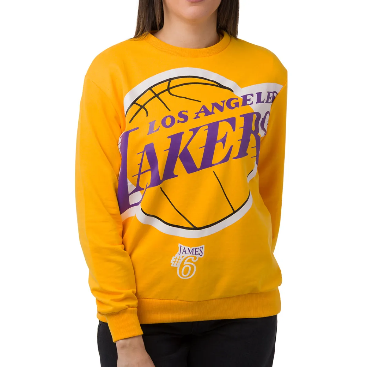 Felpa girocollo da donna Los Angeles Lakers NBA, realizzata in morbido cotone e poliestere con mega stampa frontale e dettaglio giocatore Lebron James. Vestibilità oversize.