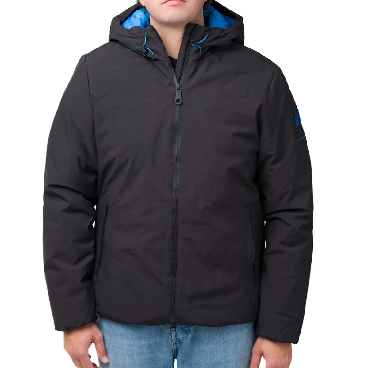 Giacca tecnica da uomo corta Tonino Lamborghini pensata per le temperature più fredde. Il modello in colore nero è caratterizzato da un cappuccio regolabile e coulisse in vita con tasche a scomparsa e logo azzurro. Esterno:1094% poliestere, 6% elastan.