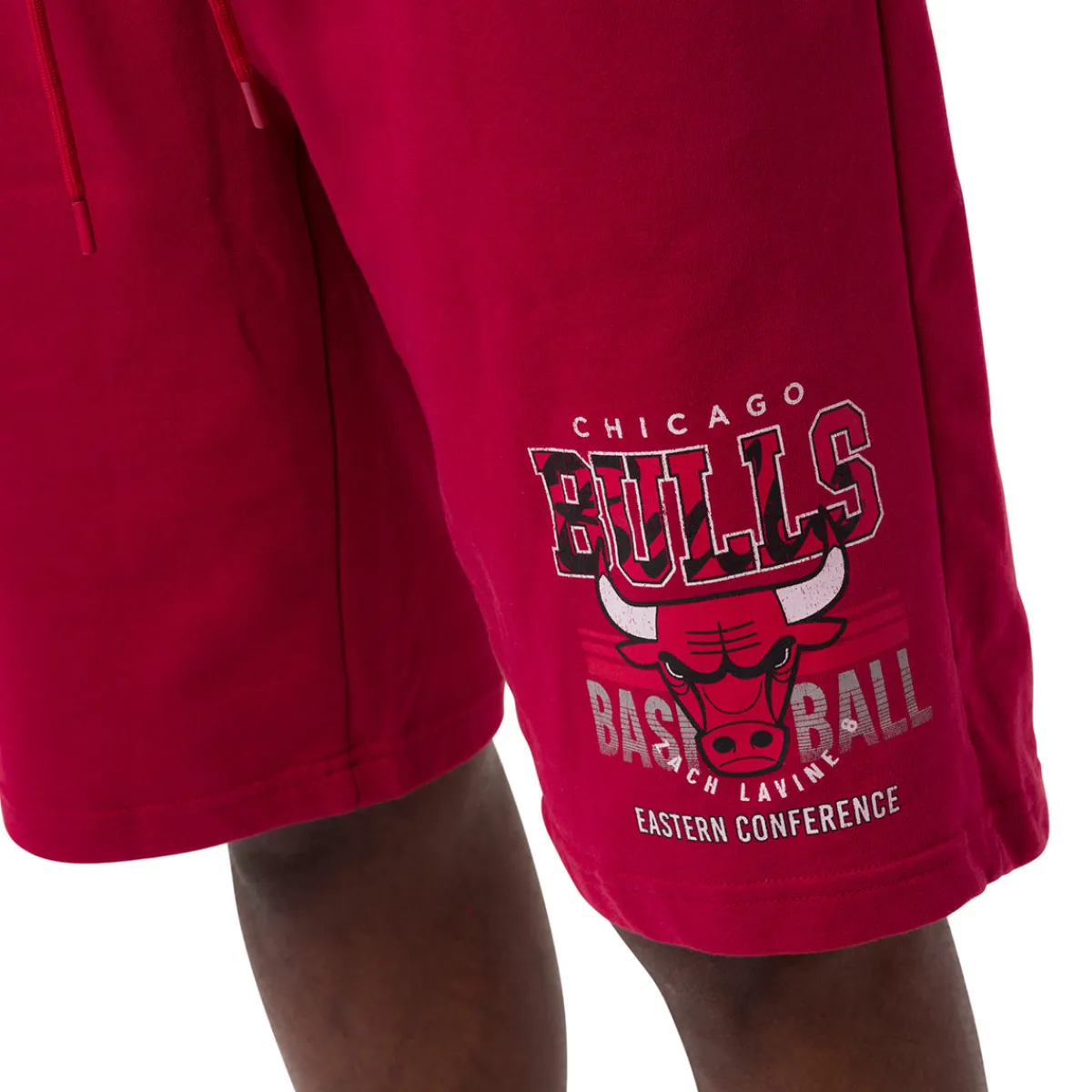 Pantaloncini corti da Uomo sportivi del brand Chicago Bulls NBA, in cotone e poliestere colore rosso. Dotati di tasche esterne e vita elasticizzata con stampa Chicago Bulls e dettaglio nome giocatore Zach Lavine.