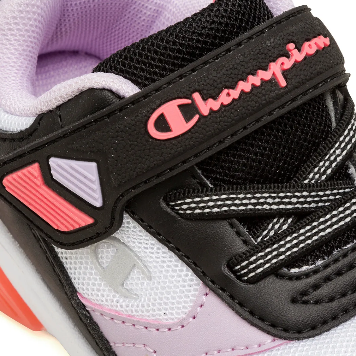 Le sneakers bianche e nere da bambina Primi Passi Champion Wave sono perfette per i primi passi! Con chiusura a strappo per una calzata facile e veloce, queste scarpe sportive sono realizzate con tomaia in materiale sintetico e dettagli in colore lilla e corallo.