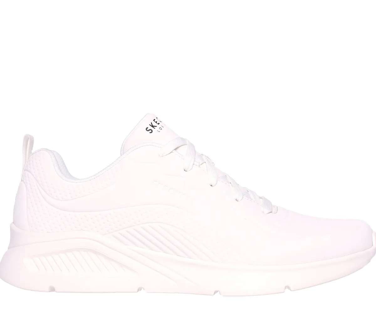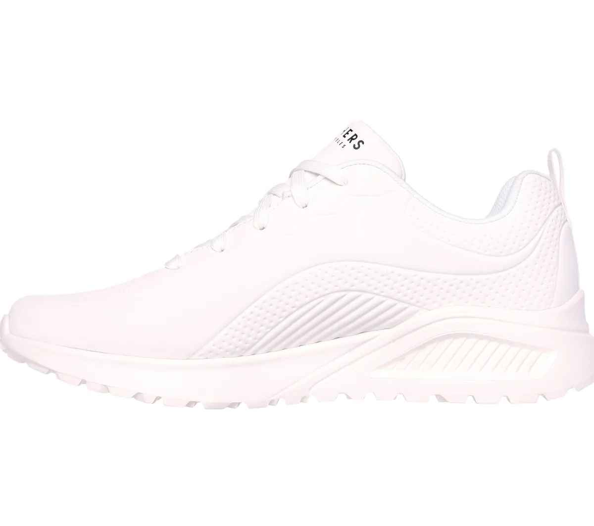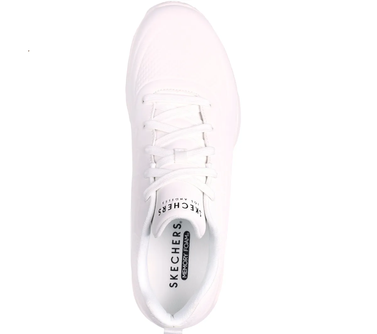 Sneakers da uomo Skechers Uno Lite in similpelle colore bianco con sottopiede Memory Foam, dettagli traforati, lacci tono su tono e logo nero sulla linguetta.