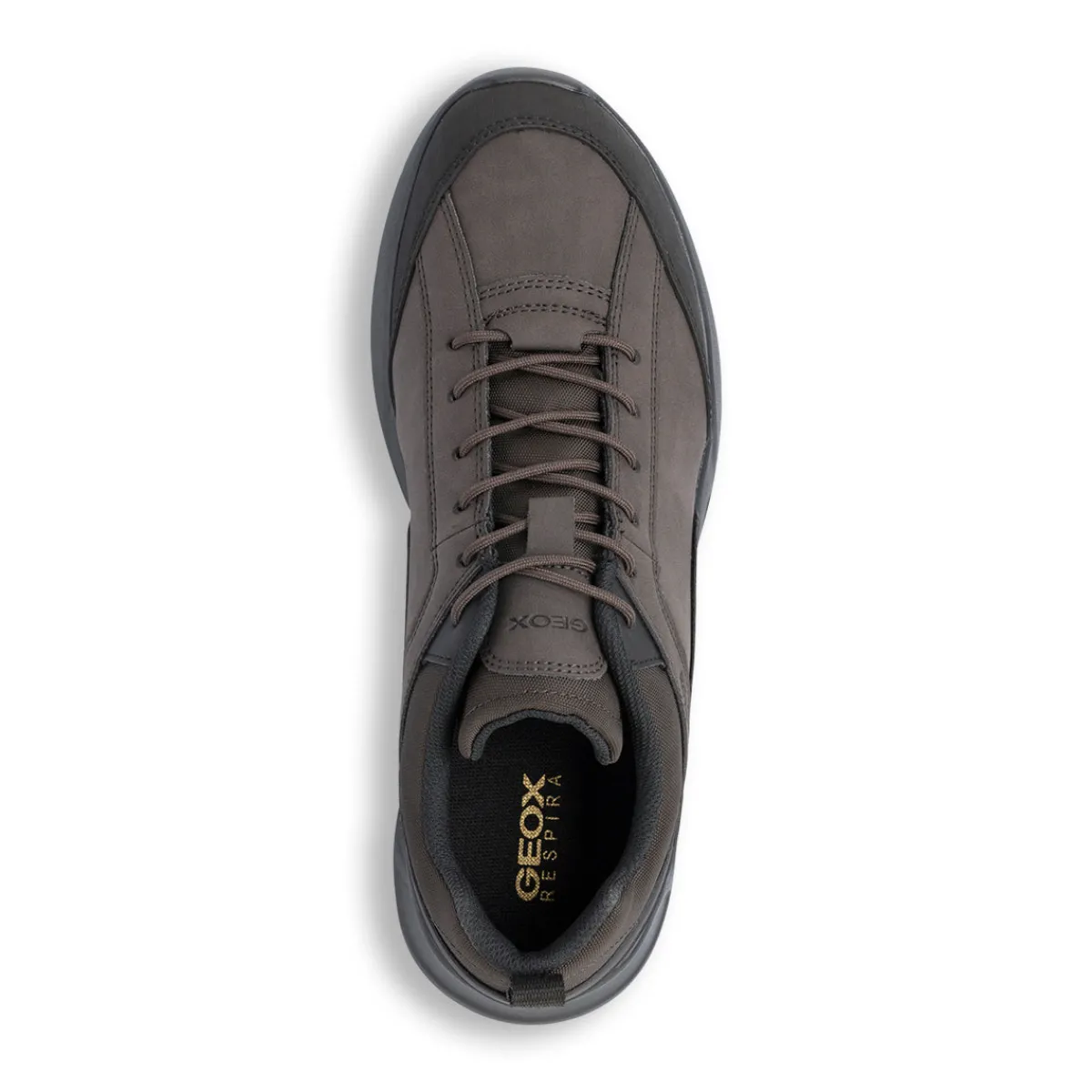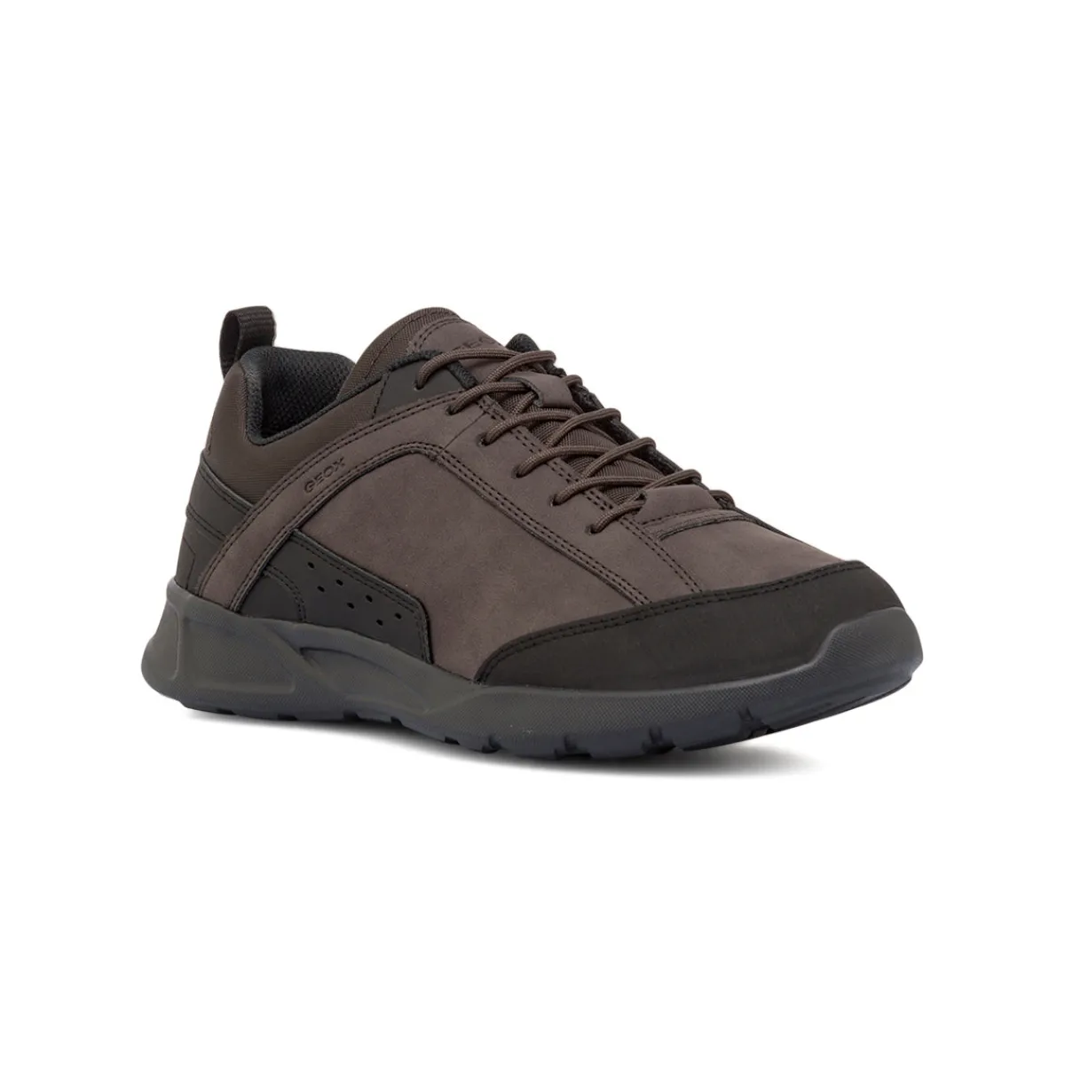Sneakers traspiranti da uomo Geox in similpelle colore marrone, logo e lacci tono su tono.