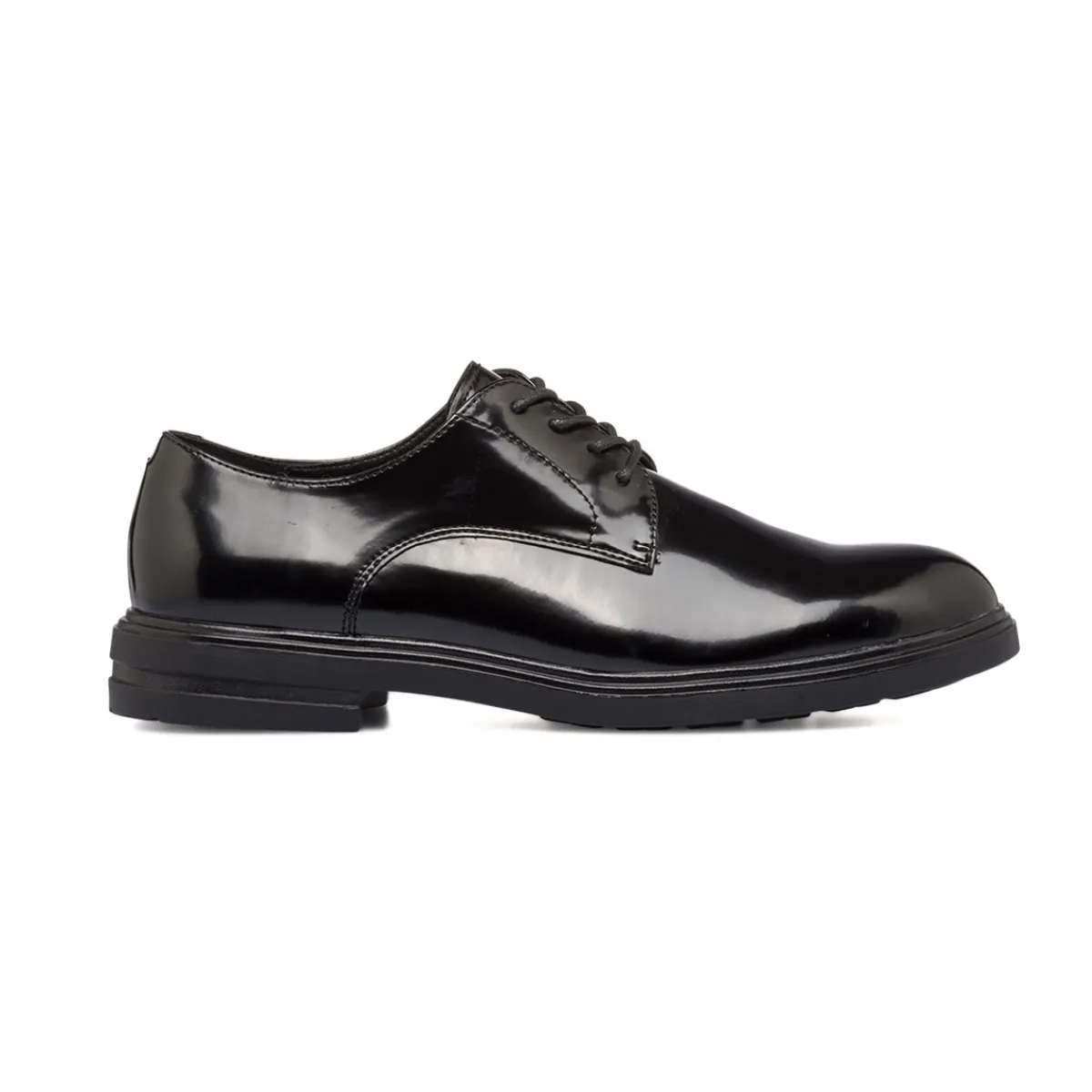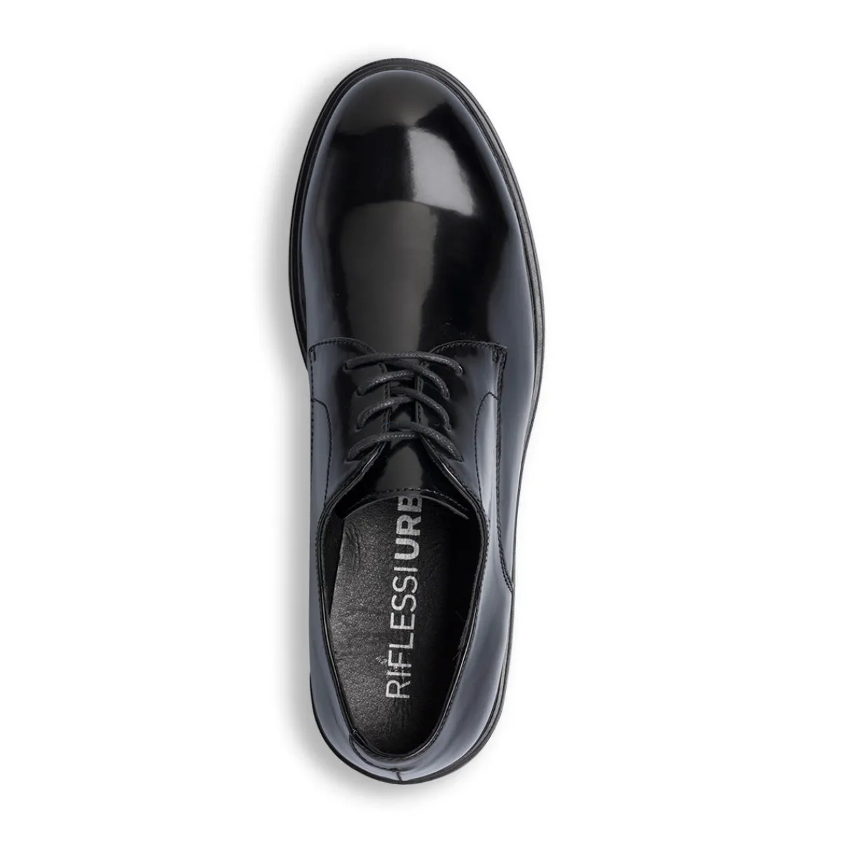 Stringate da uomo Riflessi Urbani nere effetto vernice con allacciatura Derby.
