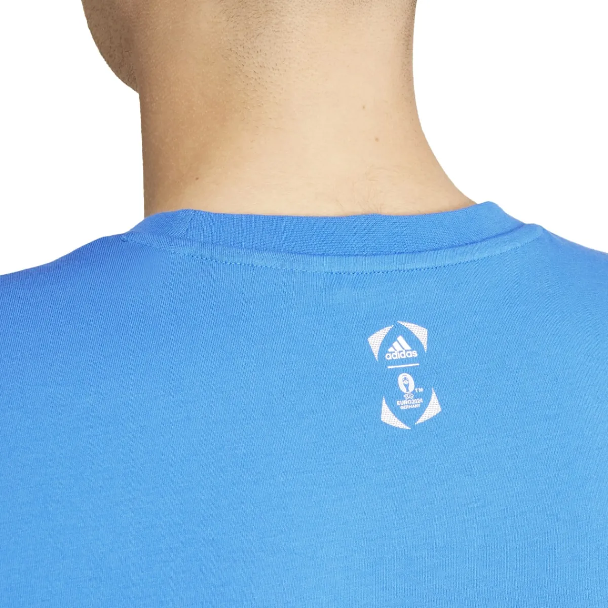 T-shirt da uomo adidas UEFA Euro 2024 Italy colore blu con logo e stampa “Italy” sul petto.
