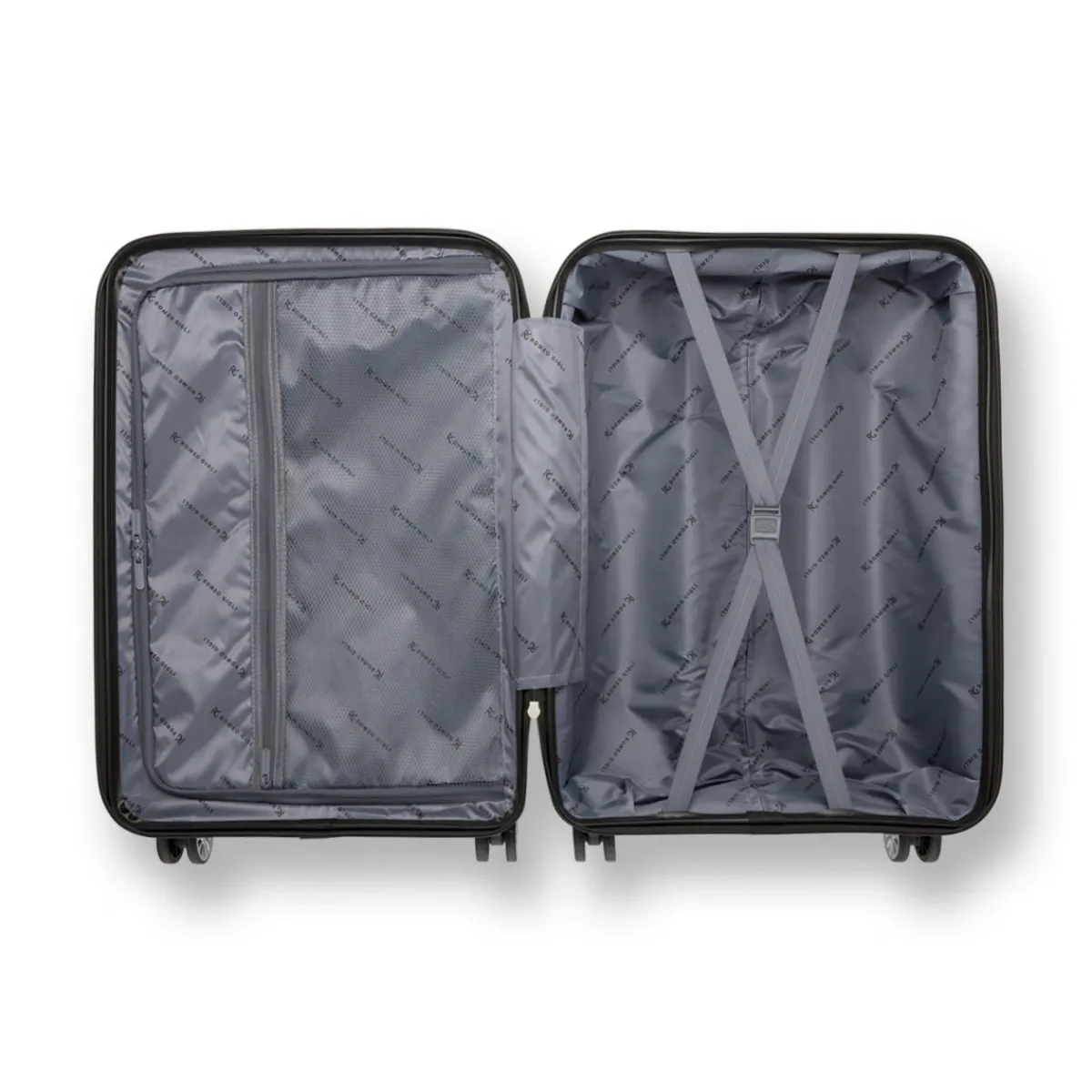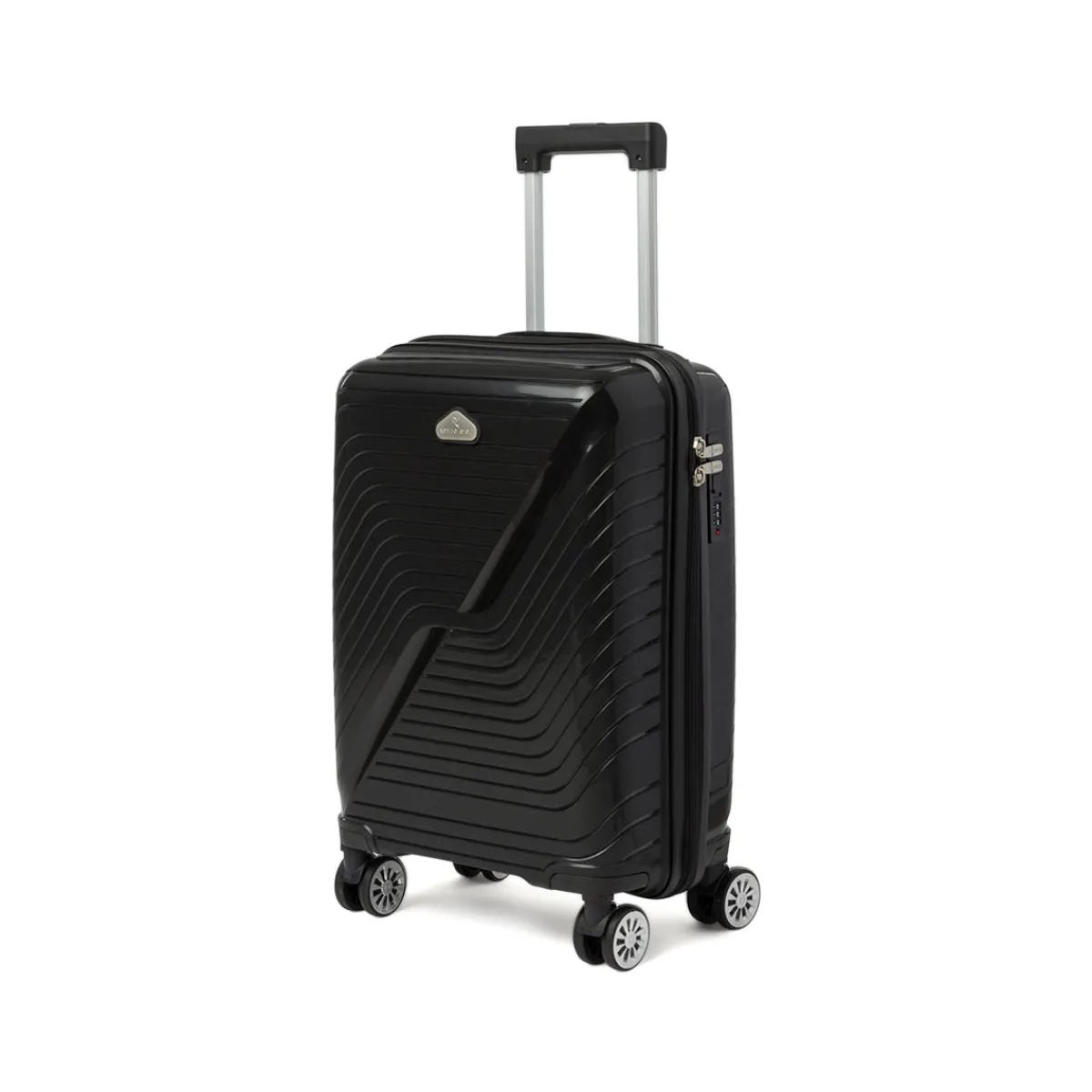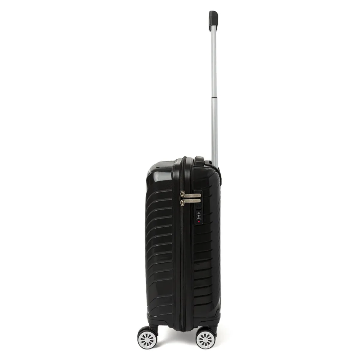 Trolley piccolo Romeo Gigli in abs colore nero, 4 ruote multidirezionali (360), manico retrattile, maniglia superiore integrata, chiusura a combinazione, interno foderato e scomparto principale con fasce ferma abiti.